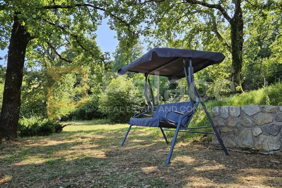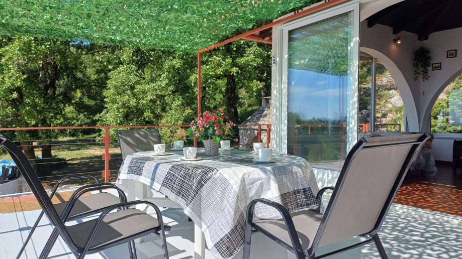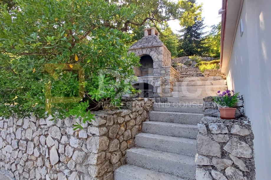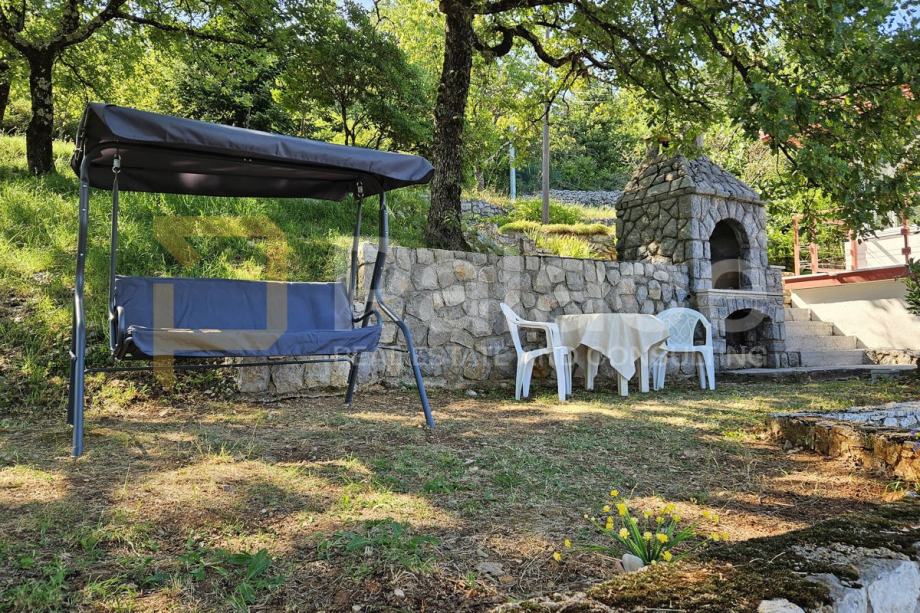 Površina parcele na kojoj se nalazi kuća iznosi 1027 m2, što je u naravi predivna ozelenjena okućnica, omeđena starinskim suhozidima sa malim voćnjakom i vrtom. Na parceli se nalazi i zidani kameni kamin/roštilj. Velika terasa ispred kuće kao i uređeni plato voćnjaka iza kuće mjesta su idealna za druženja na svježem zraku u toplim ljetnim večerima. Parcela je dovoljno velika i povoljnog oblika da se na njoj može izgraditi i bazen sa pogledom na more.