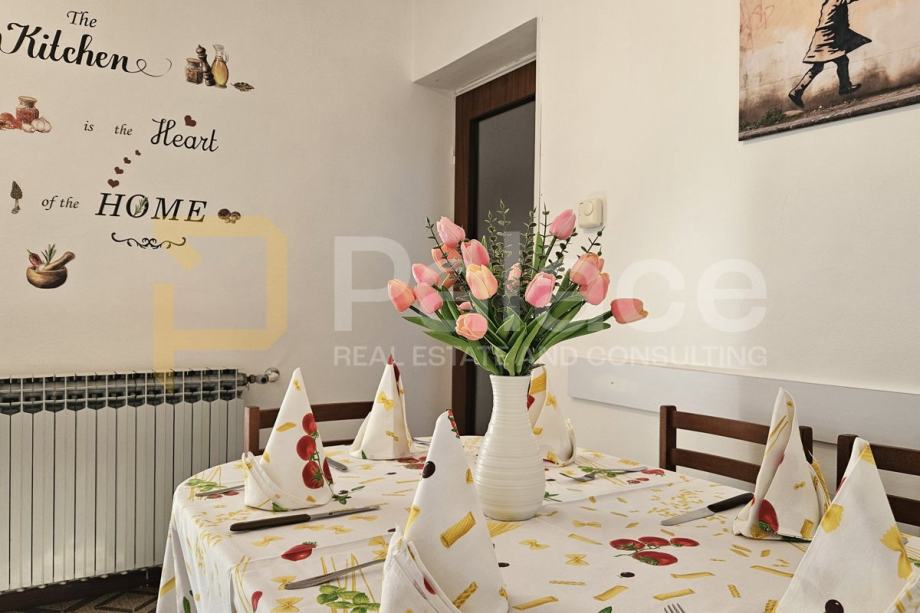 Stan je prošle godine obnovljen i opremljen, uređena je kupaonica, te vanjska i unutarnja stolarija. Na kući je obnovljena fasada i uređena terasa, kao i cijelo dvorište.