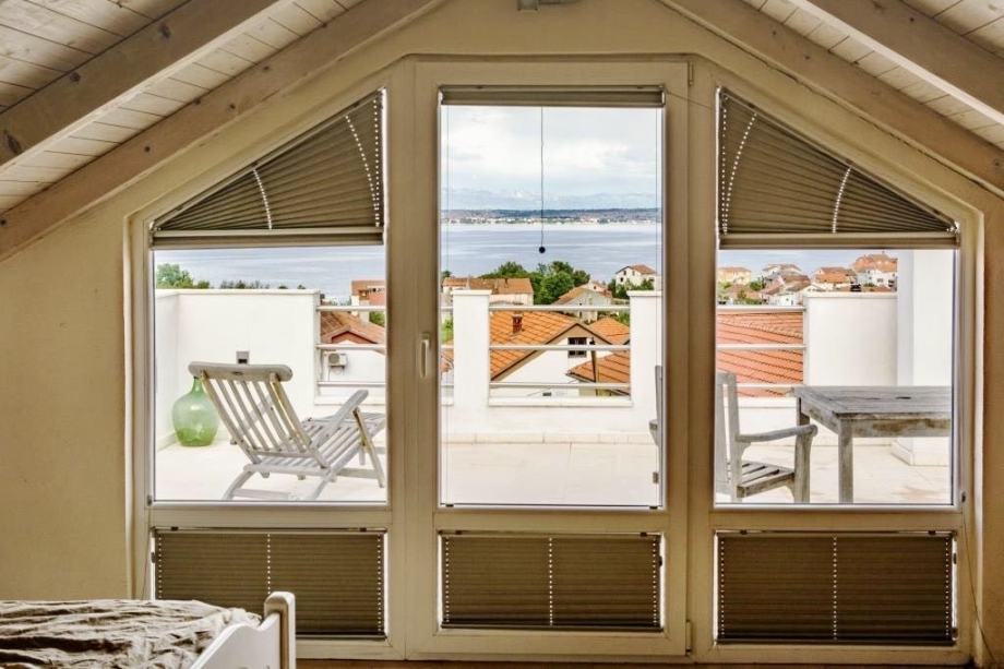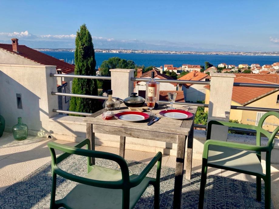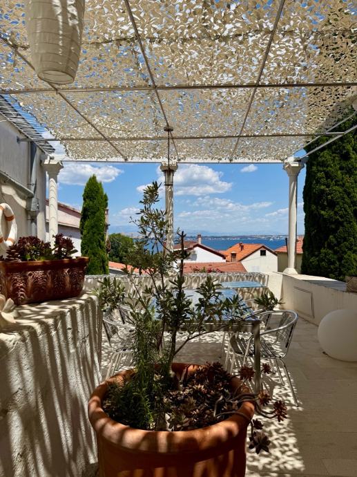 The property offers a panoramic view of the Zadar Channel and is located just a one-minute walk from the town center, close to the beach, beach bar, pharmacy, clinic, shop, Hilton Hotel, municipal office, and marina.
