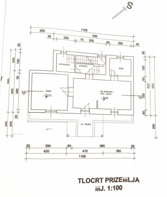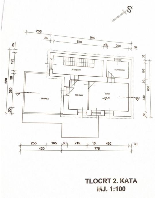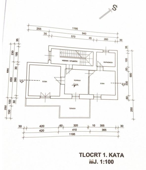 Sastoji se od prizemlja (dnevni boravak s kuhinjom i blagovaonicom, dvije sobe, kupaonica s WC-om) te 1. (kuhinja, dvije sobe, kupaonica i terasa) i 2. kata (kuhinja, soba, kupaonica i terasa).