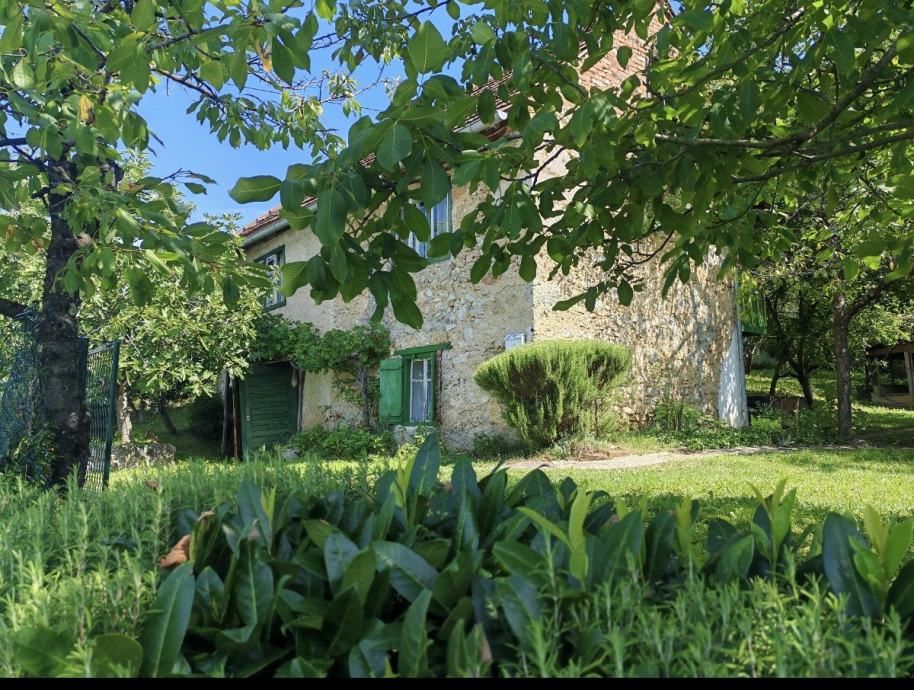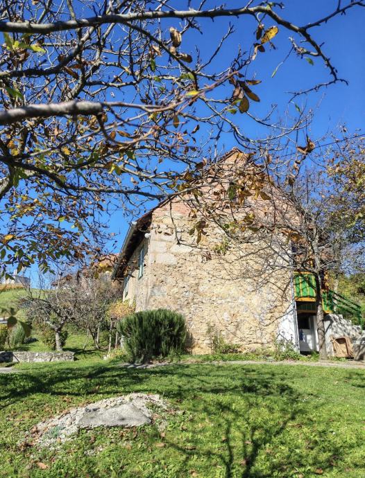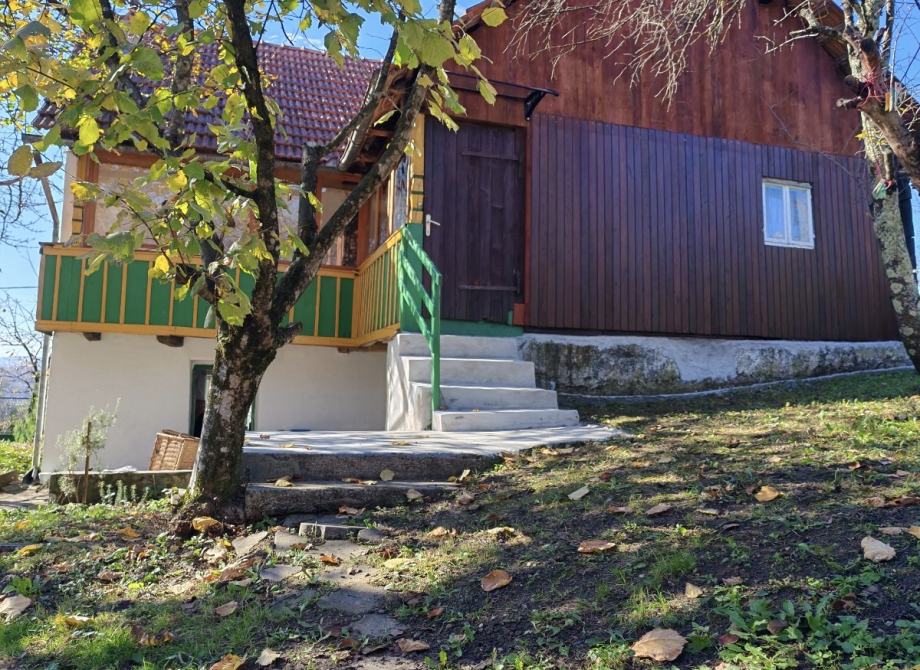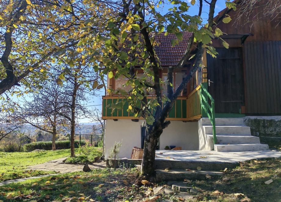 Uz kuću je sjenik pogodan za parkiranje auta i kao spremište. Kuću i sjenik okružuje prostrano dvorište s lijepim pogledom na okolinu.