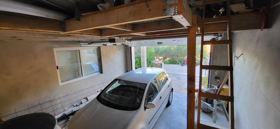 Kuća je koncipirana na način da se u visokom prizemlju nalazi dvosobni stan sa dodatnim pomoćnim prostorijama i garaža.