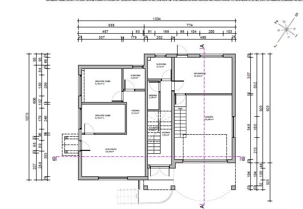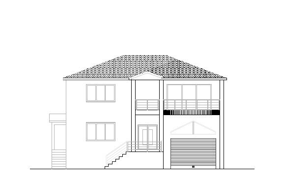 Kuća je koncipirana na način da se u visokom prizemlju nalazi dvosobni stan sa dodatnim pomoćnim prostorijama i garaža.