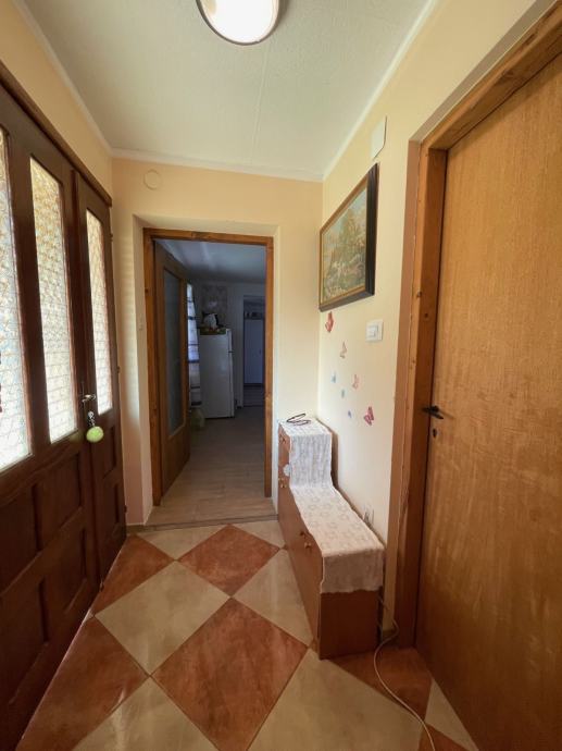Kuća prizemnica 51 m2 za stanovanje, a sastoji se od hodnika, kupaonice (tuš), spavaće sobe, kuhinje s blagovaonom i malim dnevnim boravkom sa izlazom na terasu, parcela od ukupno 377 m2.