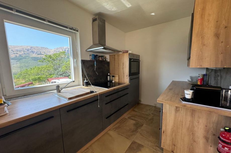 Otok Krk, Baška, Draga Bašćanska, prodaja samostojeće kuće površine 130 m2, s prostranom okućnicom površine 430 m2, na mirnoj lokaciji, 3000 m od mora. Kuća se sastoji od prizemlja s dnevnom sobom, kuhinjom, blagovaonom, spavaćom sobom, kupaonicom, toaletom, hodnikom i natkrivenom terasom te prvog kata s tri spavaće sobe i terasom. Kvalitetna gradnja, PVC stolarija, klimatizacija, mogućnost izgradnje bazena, više parkirnih mjesta.