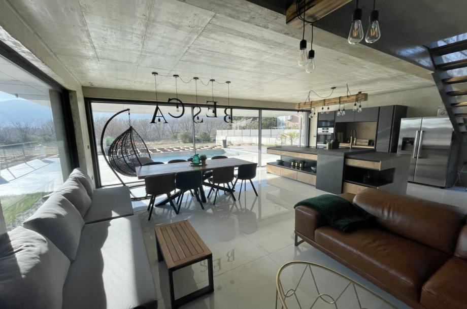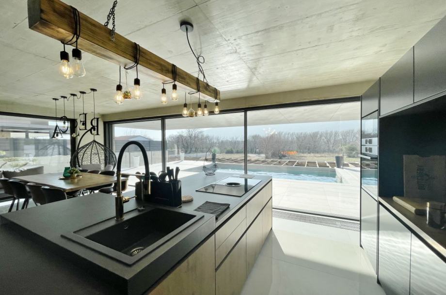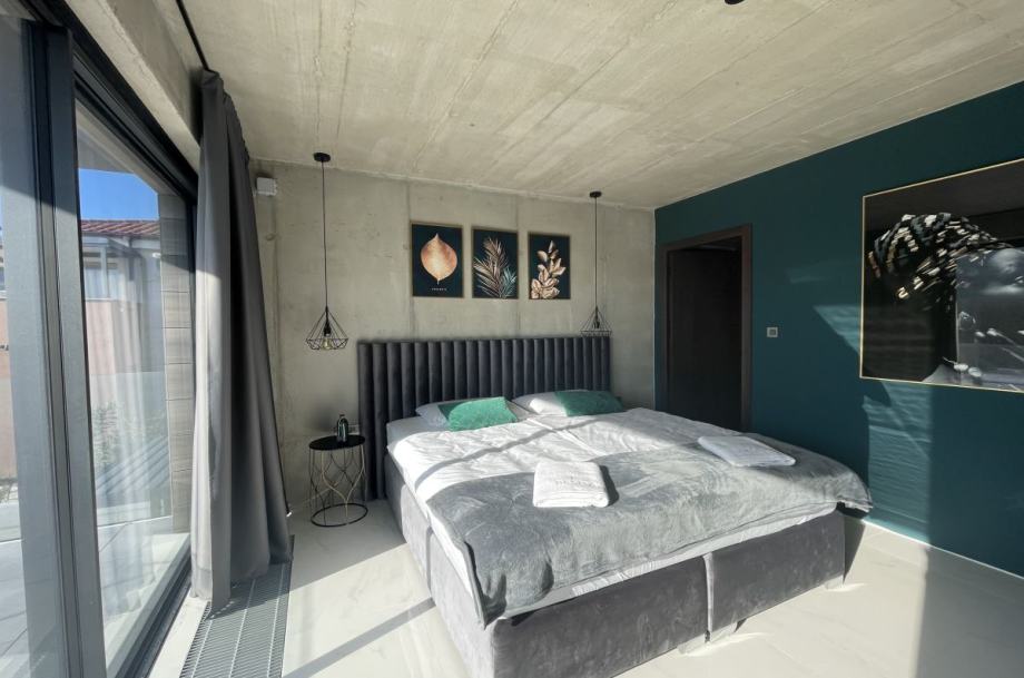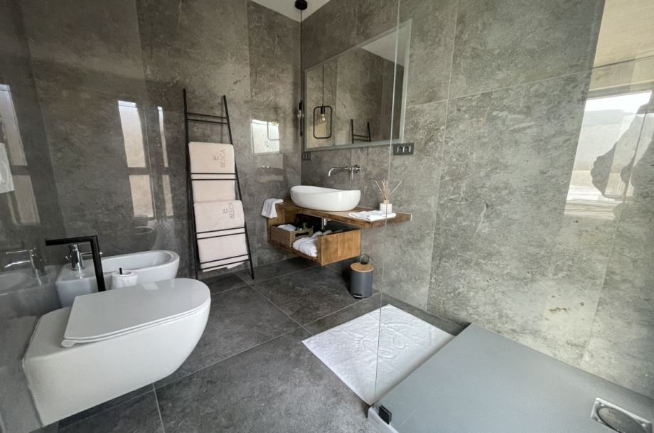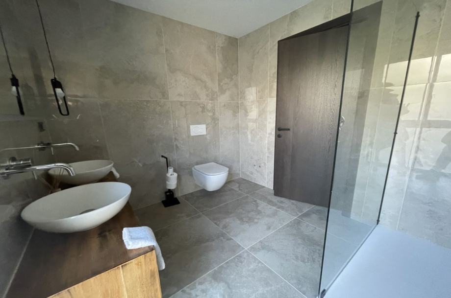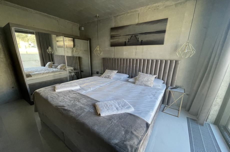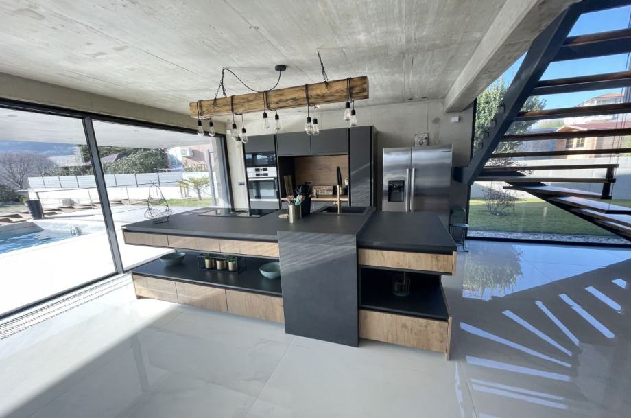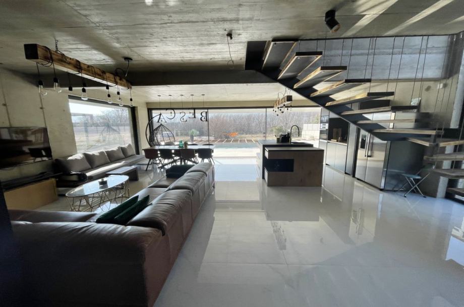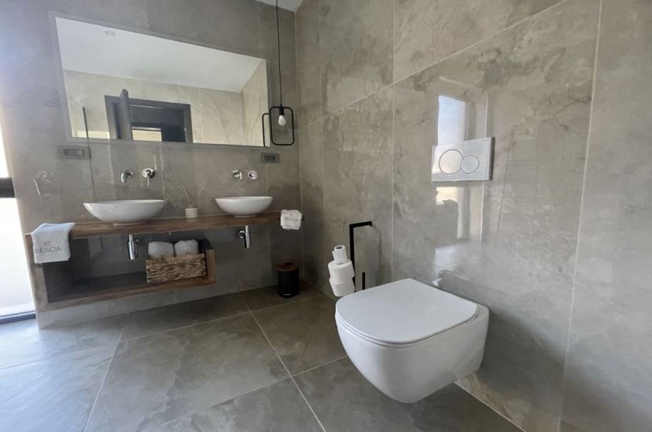 Otok Krk, Baška, prodaja ekskluzivne, dizajnerske, urbane vile, površine 249,79 m2, s bazenom i uređenom okućnicom, na parceli površine 630 m2. Vila se sastoji od suterena s igraonicom, wellnessom ( finska sauna, jacuzzi, tuš ), teretanom, kotlovnicom, strojarnicom bazena, spremištem, stubištem te praonicom rublja, prizemlja s predprostorom, dnevnom sobom, kuhinjom, blagovaonom, toaletom, stubištem, prostranom natkrivenom terasom, sunčalištem, bazenom i vanjskom natkrivenom kuhinjom s plinskim roštiljem i prostorom za druženje te prvog kata s četiri spavaće sobe s vlastitim kupaonicama, hodnikom, te balkonom površine 14,70 m2. Vrhunska kvaliteta gradnje i opreme, dizajnerski namještaj, klimatizacija, staklene stijene s niskoprofilnim okvirima, podno grijanje i hlađenje pomoću dizalica topline i fan-coilera u dnevnoj te spavaćim sobama, zasebna regulacija grijanja i hlađenja svih prostorija, preljevni bazen s vrhunskom bazenskom tehnikom, protustrujnim plivanjem, masažnim mlaznicama i automatskim čišćenjem filtera, vrhunska unutarnja i fasadna keramika proizvođača IMOLA, automatsko navodnjavanje okućnice, toplinski izolirana ventilirana fasada otporna na klimatske utjecaje, solarni sustav za grijanje sanitarne vode, četiri natkrivena parkirna mjesta. Atraktivna lokacija 500 m od plaže i centra.