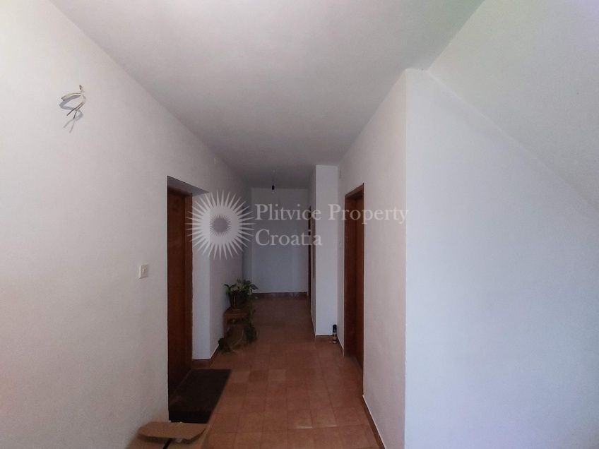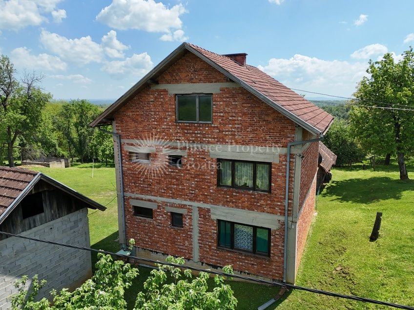 Kuća se proteže na više razina, uključujući podrum, prizemlje, prvi kat i neizgrađeno potkrovlje, pružajući dovoljno prostora i mogućnosti za prilagođavanje. Dodatne zgrade na posjedu nude svestranost, služeći kao skladište, radionice ili ispunjavajući druge potrebe. Sa svojim ogromnim zemljištem i fleksibilnim rasporedom, ova nekretnina je savršena za poljoprivredu, aktivnosti na otvorenom ili budući razvoj.