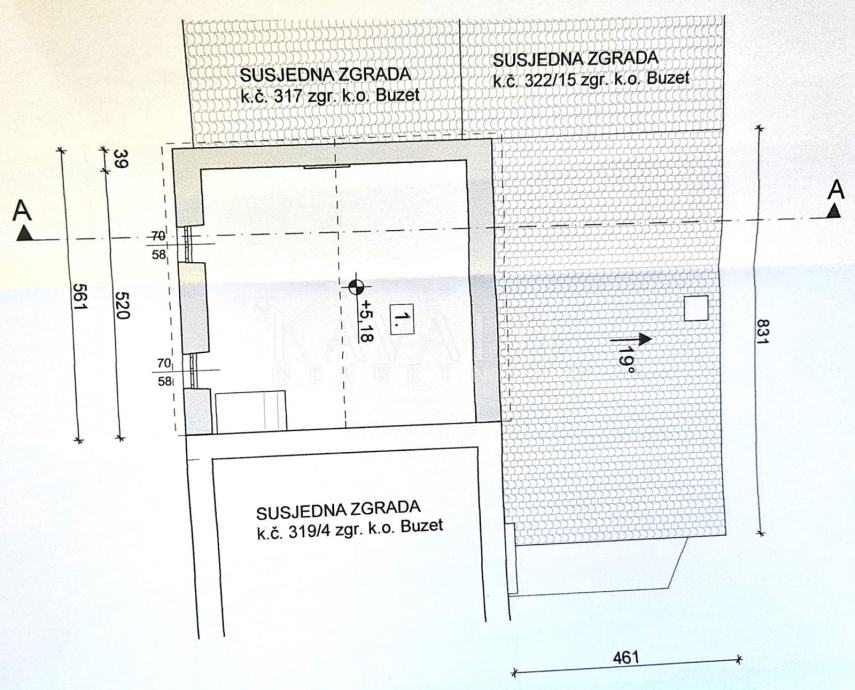 Do centra Buzeta ima svega 3 km gdje se nalaze trgovine, škola, ljekarna, ambulanta i svi drugi potrebni sadržaji, dok se autobusna stanica (dječji autobus) nalazi svega 50 metara od kuće.