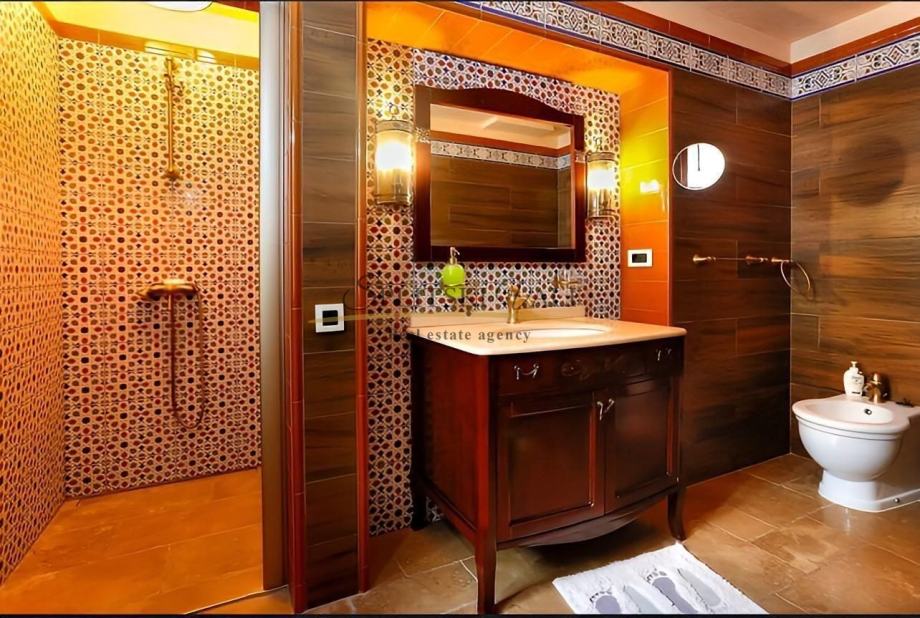 Nekretnina također ima apartman s posebnim ulazom koji se sastoji od kupaonice, spavaće sobe, kuhinje i dnevnog boravka. Oko vile se prostire vanjski grijani bazen i lijepo uređene mediteranske biljke.