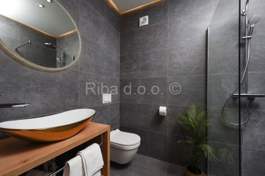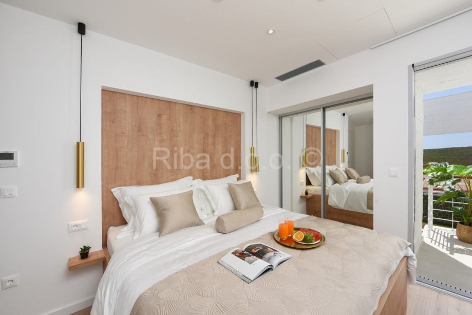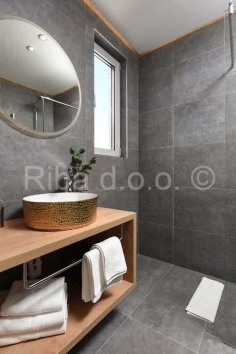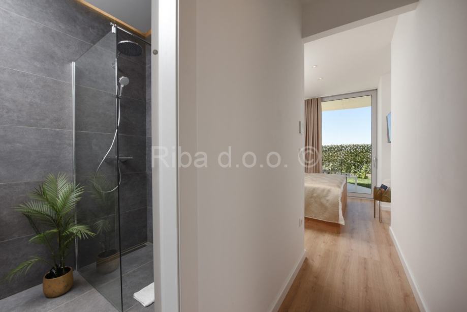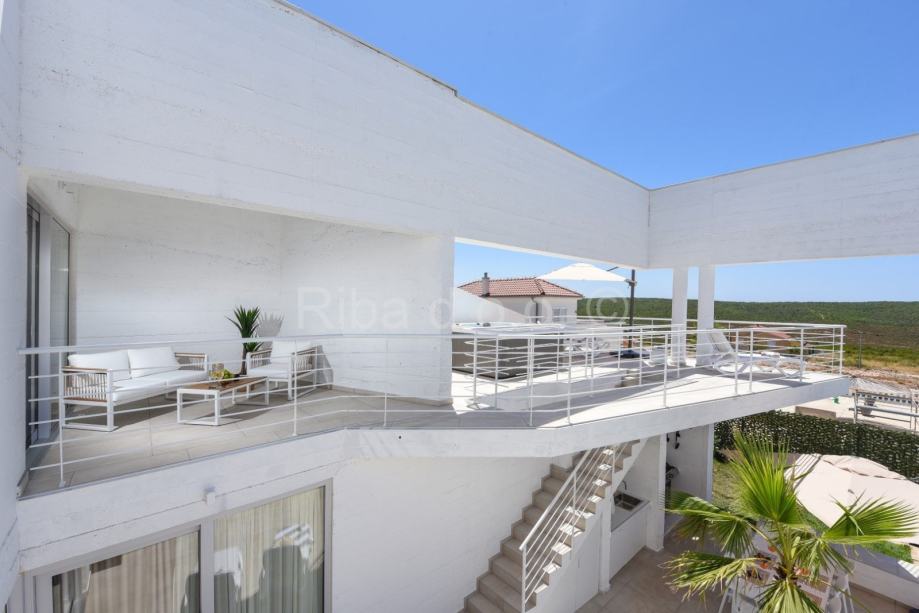 Na katu su tri spavaće sobe sa tri kupaonice. Svaka soba na katu ima izlaz na gornju terasu sa jacuzziem.