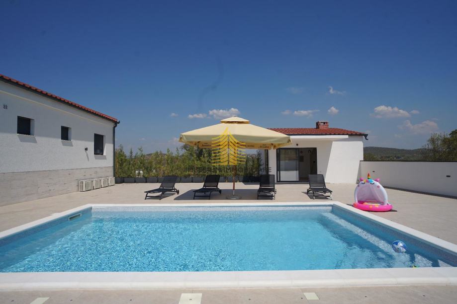 Nedavno adaptirana, vila odiše modernim linijama i kvalitetnim materijalima. Posebnu vrijednost interijeru daju detalji poput ljetne kuhinje, koji omogućavaju uživanje u pripremi obroka na otvorenom, dok bazen i roštilj stvaraju savršeno okruženje za druženje i odmor. Grijanje na struju i klima uređaj osiguravaju ugodnu temperaturu tijekom cijele godine.