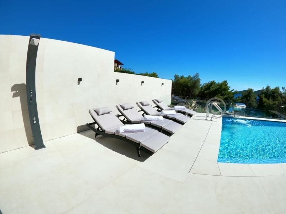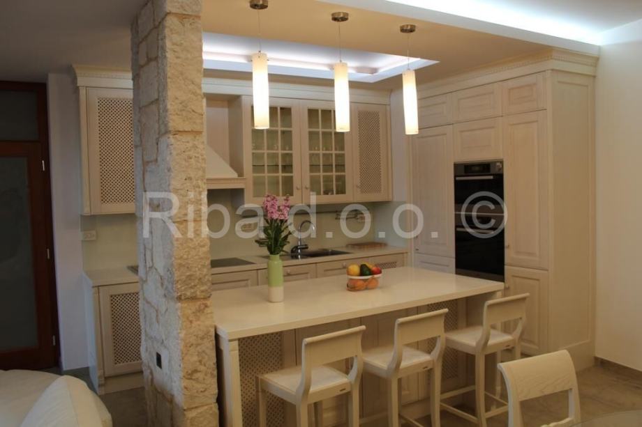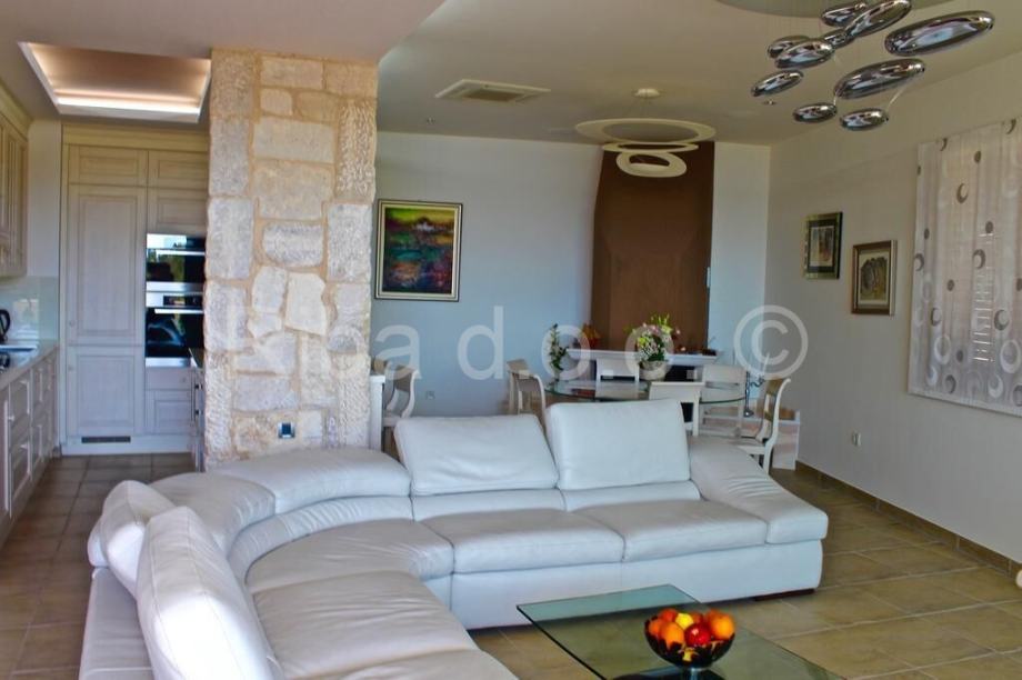 Kombinirajući visoki standard udobnosti, luksuz i estetiku, vila je opremljena modernim namještajem uz modernu aparaturu i apsolutnu komociju. Doživljaj interijera upotpunjuju savršeno dozirani kameni detalji.