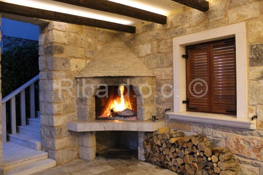 Kameni detalji iznutra nastavljaju se i na terasi na kojoj je veliki kameni stol i lijepa ograda od kamenih kolonica.