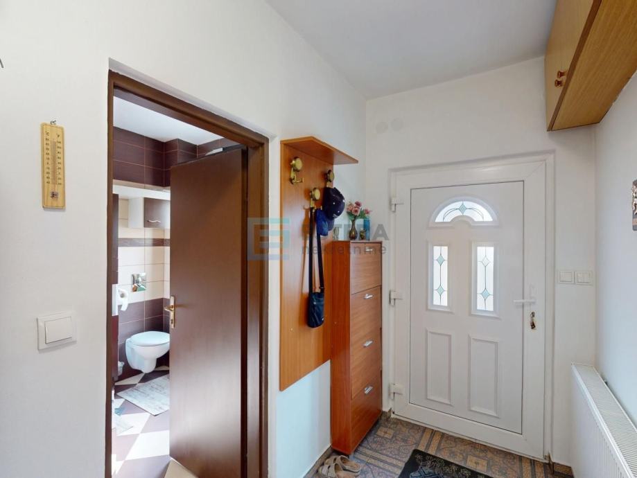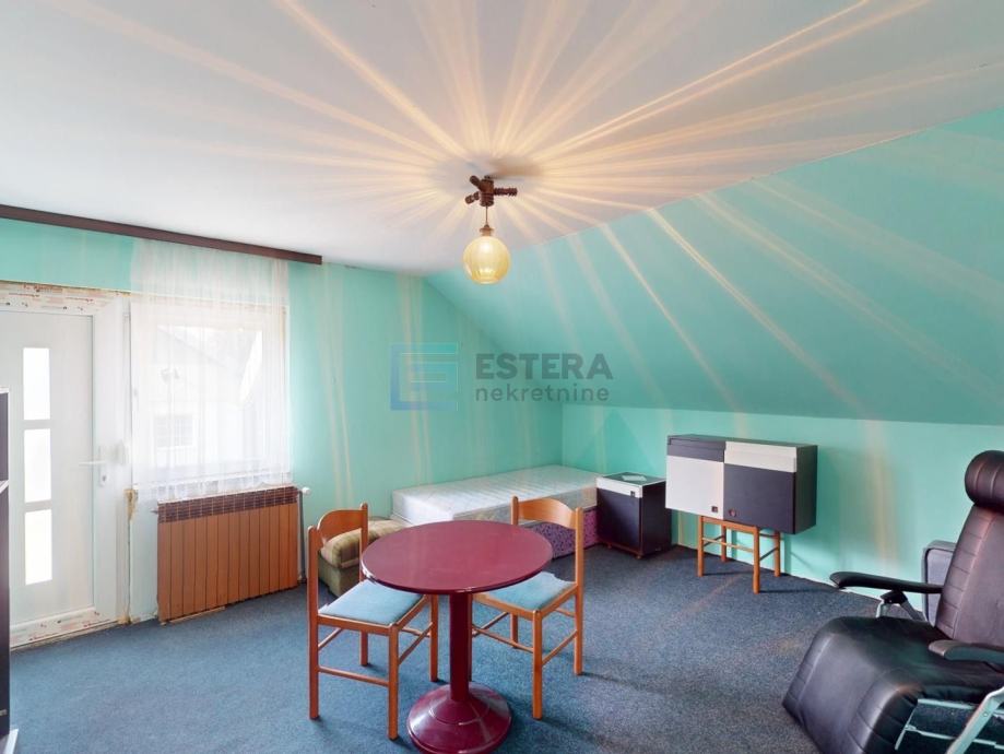 Opis: Prizemlje se sastoji od ulaznog hodnika, kuhinje, blagovaonice, dnevnog boravka, zimskog vrta, kupaonice i natkrivene terase. U potkrovlju, koje ima zaseban ulaz putem vanjskih stepenica, nalaze se tri sobe s kupaonicom. Postoji mogućnost povezivanja gornjeg i donjeg kata iz unutrašnjosti kuće.