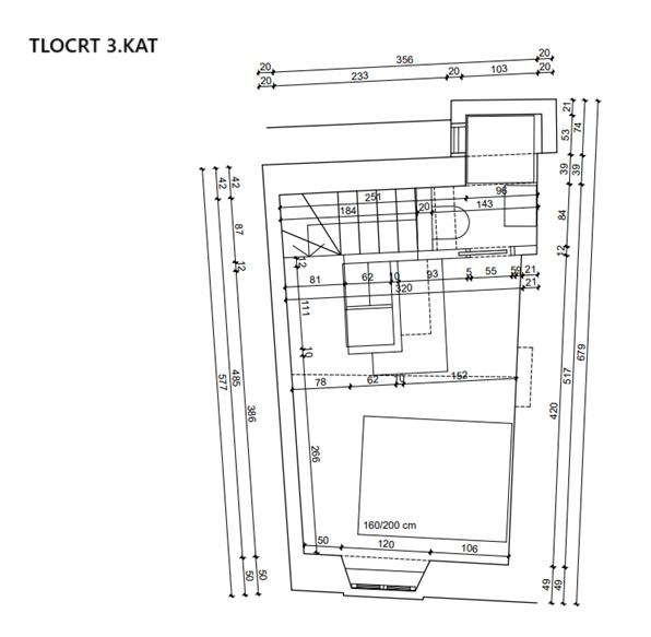 Kuća je funkcionalno podijeljena u tri stambene jedinice: