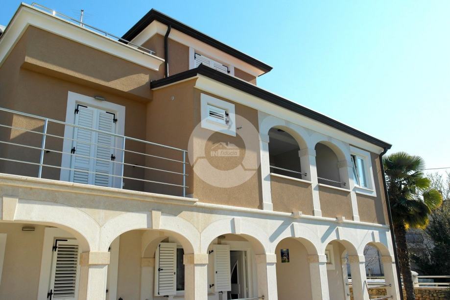 Apartmanska kuća nalazi se u Funtani, malom istarskom gradiću, 500 m od mora. Građena je 2014. godine na parceli od 1126 m2. Sastoji se od prizemlja, prvog kata i drugog kata. Ukupno ima 7 stambenih jedinica + 3 suita, konoba sa kaminom, te bazen na zapodnoj strani kuće ispred natkrivene terase od 24 m2. Veliki je potencijal za najam, vlasnici ostvaruju visoko prihode na godišnjoj razini. Stanovi i apartstudiji su opremljeni sa vrhunskom opremom, namještajem i materijalima. Ispred kuće je veliki prostor za parking gostiju (za 10 vozila). Parcela je ograđena kamenim zidom s kamenim stupovima, te rostfrai ogradom. Pješačka i kolna kapija su kvalitetno izrađena. Dokumentacija kuće: uredna. Grijanje je predviđeno putem klima ili na struju. Kuća ima solarni sistem za grijanje tople vode od 800 l. Stolarija je PVC.