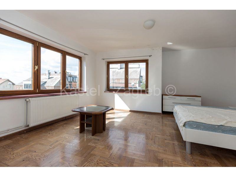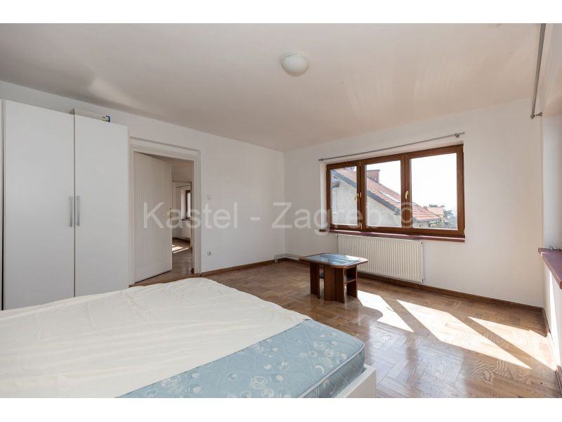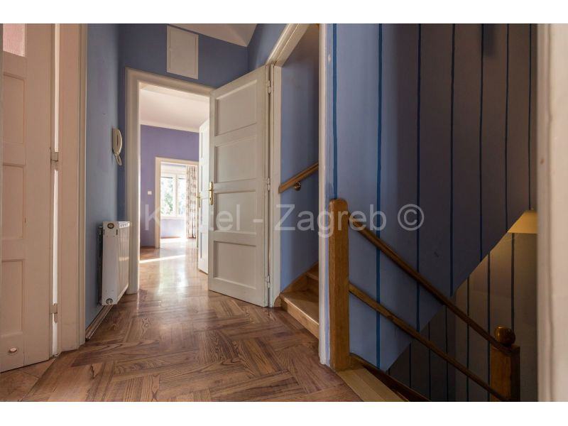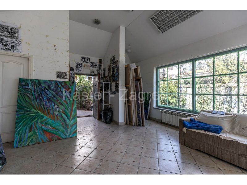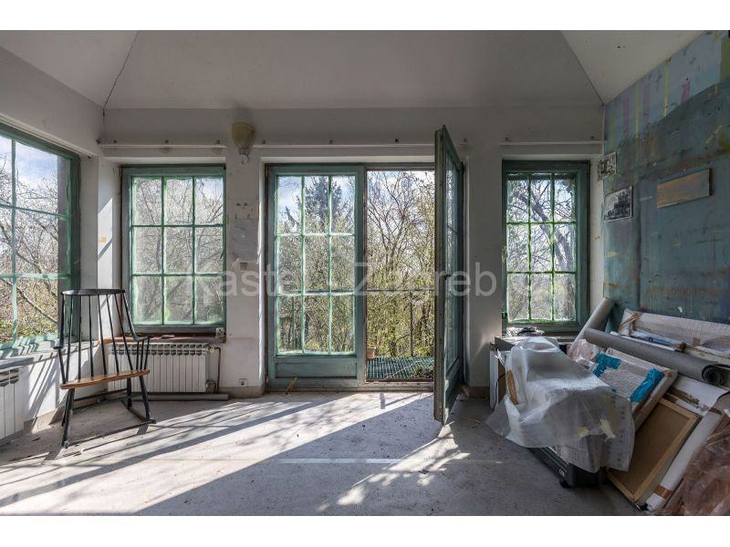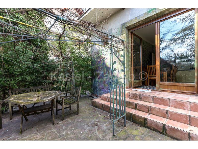 Dvije kuće na jednom od ljepših lokacija Pantovčaka s prekrasnim pogledom na grad i okolicu. Veća kuća sastoji se od tri nadzemna etaže i suterena u kojem je jedna velika prostorija idealna kao dvorana za vježbanje ili spremište s kotlovnicom i vešerajem. Etaža visokog prizemlje sastoji se od dviju velikih soba, manje kupaone, kuhinje s blagovaonicom koja ima izlaz na terasu u vrtu. Etaža prvog kata ima kupaonu i tri velike sobe od kojih jedna ima balkon na dvorišnoj strani. Etaža drugog kata je koncipirana kao zaseban stan s dvije sobe, kupaone, kuhinje s blagavaonicom i velike terase. Kuća u dvorištu tlocrtne površine 71 m2, zasebna je cjelina sa svojim kućnim brojem i priključcima. Obje kuće imaju velike staklene površine tako da su sve prostorije izuzetno svijetle.