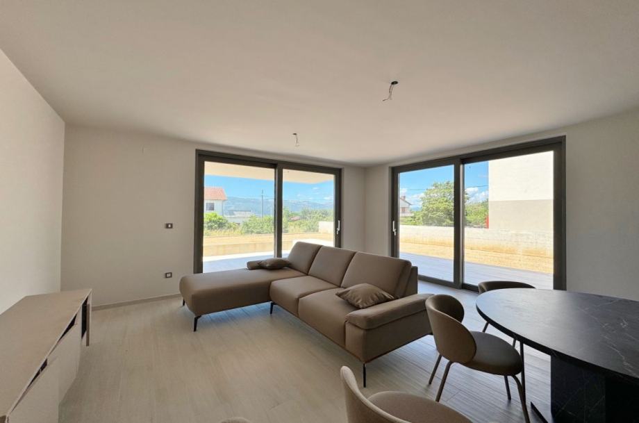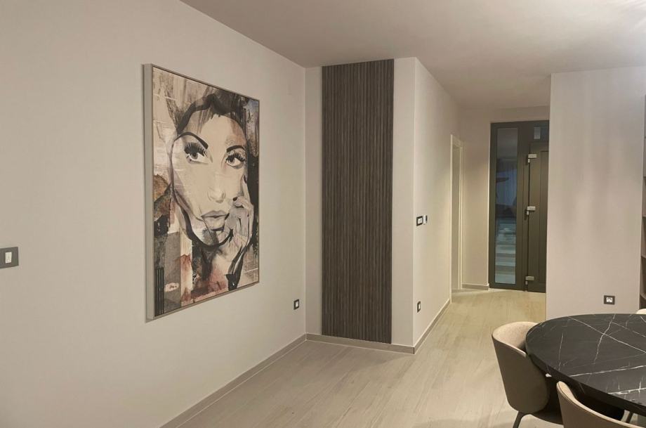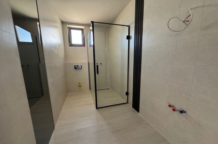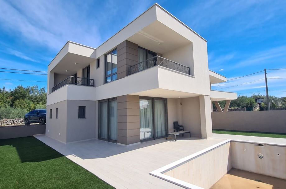 Otok Krk, grad Krk, šire područje, prodaja nove, ekskluzivne urbane vile, površine 164,80 m2, s bazenom i uređenom okućnicom, na parceli površine 560 m2. Vila se sastoji od prizemlja površine 89,26 m2 s dnevnom sobom, kuhinjom, blagovaonom, hodnikom, spavaćom sobom, kupaonicom, toaletom, spremištem, stubištem i natkrivenom terasom te prvog kata površine 75,54 m2 s tri spavaće sobe, dvije kupaonice, hodnikom, garderobom i natkrivenom terasom. Vrhunska kvaliteta gradnje i opreme, dizajnerski namještaj, klimatizacija, kvalitetne podne obloge, podno grijanje, panoramske klizne stijene, priprema za grijanje bazena, priprema za fotonaponsku elektranu na krovu, priprema za punjenje električnih vozila, dva parkirna mjesta. Mirna lokacija, 1500 m od mora.