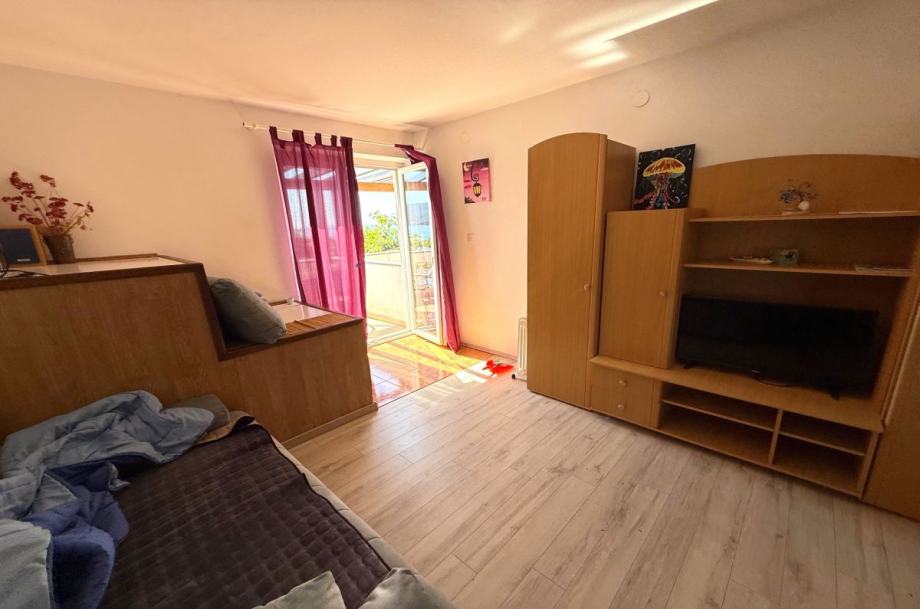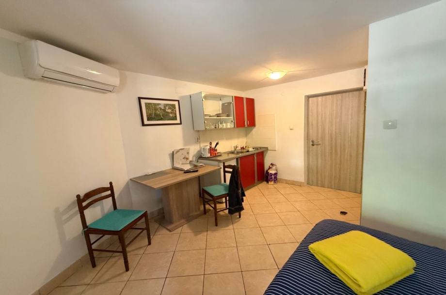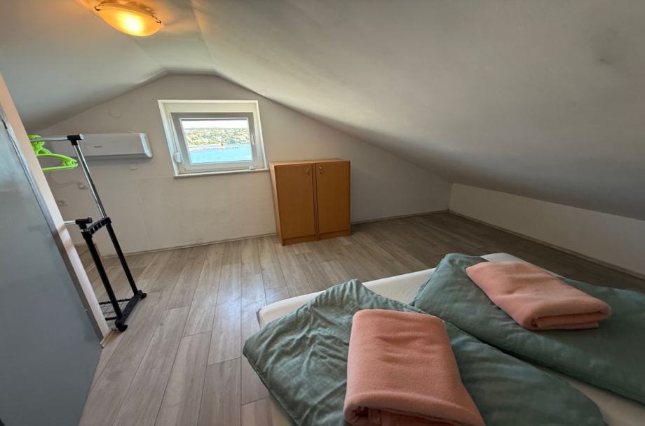 Otok Krk, grad Krk, prodaja dvojne kuće površine 163 m2, s okućnicom površine 147 m2 i direktnim izlazom na plažu. Kuća se sastoji od prizemlja s dva studio apartmana s terasama s pergolama, te prvog kata s dva jednosobna apartmana s balkonima i pogledom na more. Kvalitetna gradnja, PVC stolarija, klimatizacija, javni parking, registriran turistički najam. Ekskluzivna lokacija.