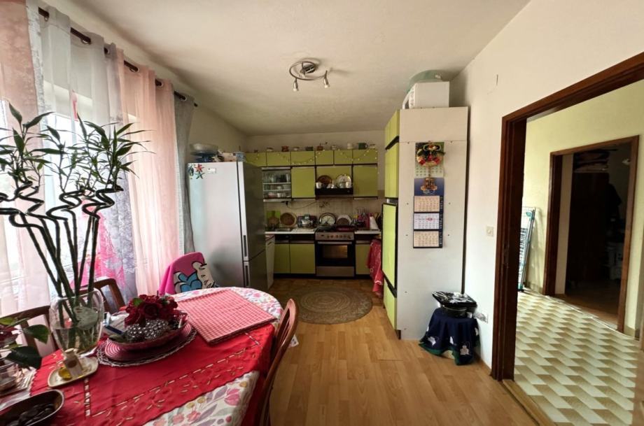 Otok Krk, grad Krk, prodaja samostojeće obiteljske kuće površine 218,55 m2, s dva odvojena stana i pogledom na more, na atraktivnoj lokaciji, 500 m od plaže. Kuća se sastoji od podruma s ulaznim prostorom i cisternom, prizemlja s dnevnom sobom, kuhinjom, blagovaonom, dvije spavaće sobe, kupaonicom, hodnikom, balkonom i terasom, te prvog kata s dnevnom sobom, kuhinjom, blagovaonom, dvije spavaće sobe, kupaonicom, hodnikom i dva balkona. PVC stolarija, klimatizacija, mogućnost gradnje bazena, dva parkirna mjesta.