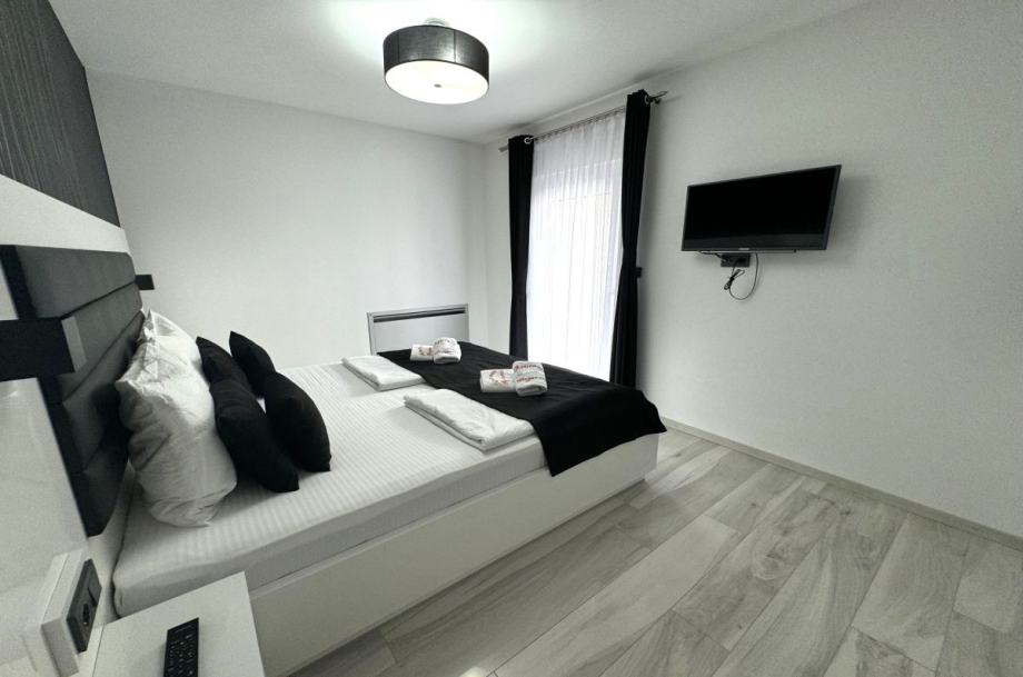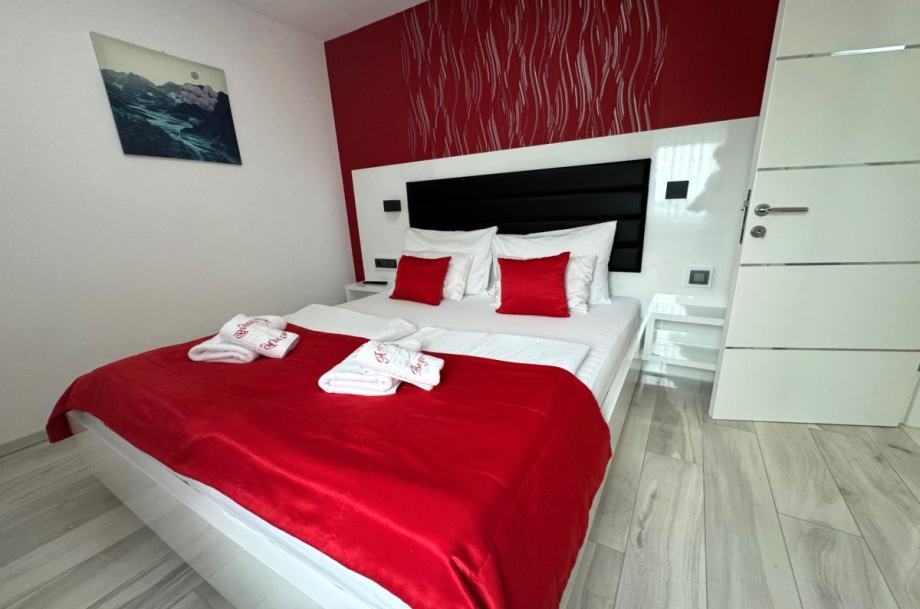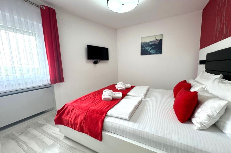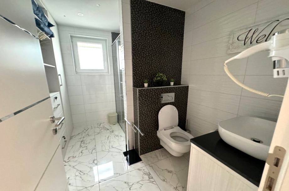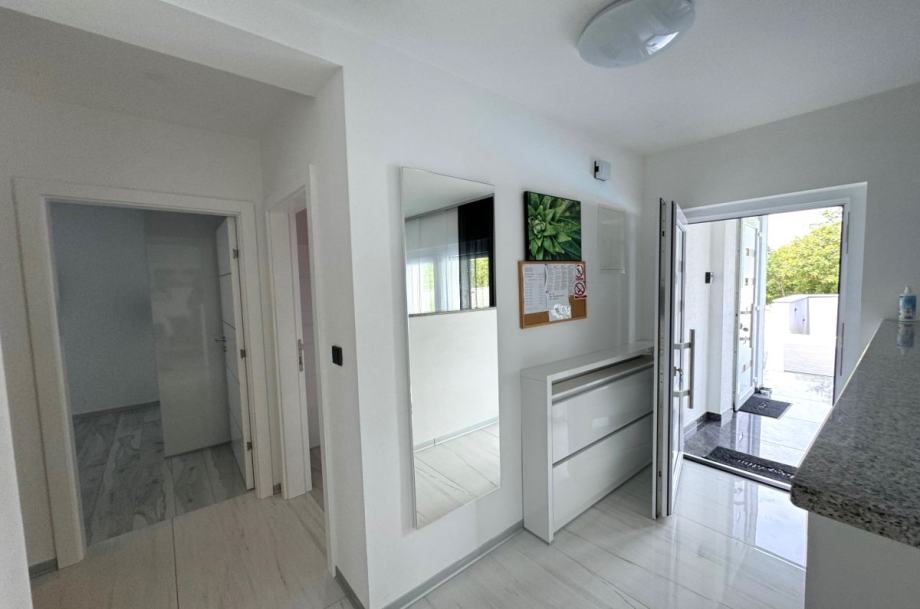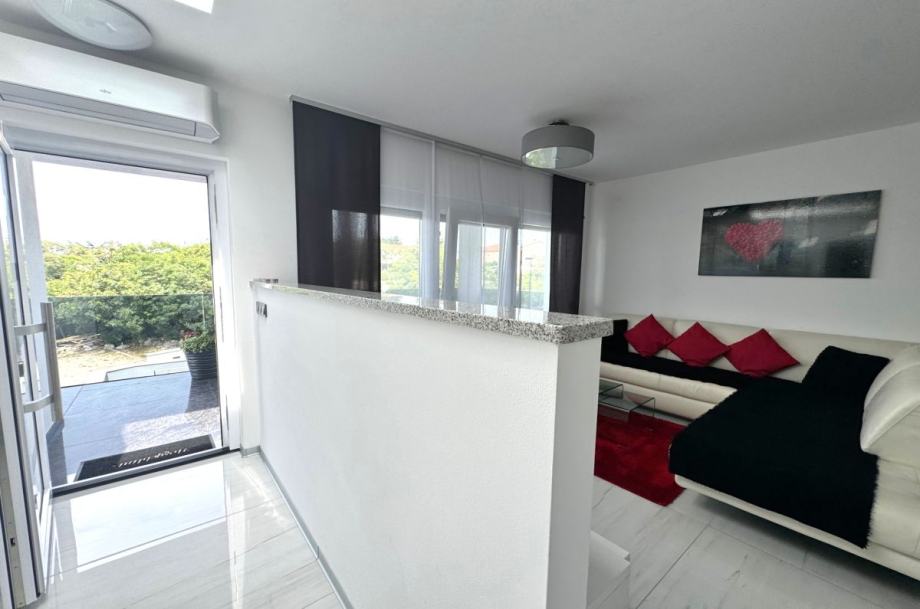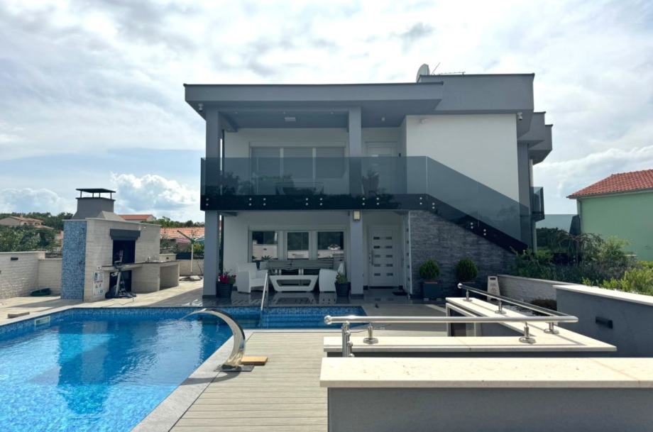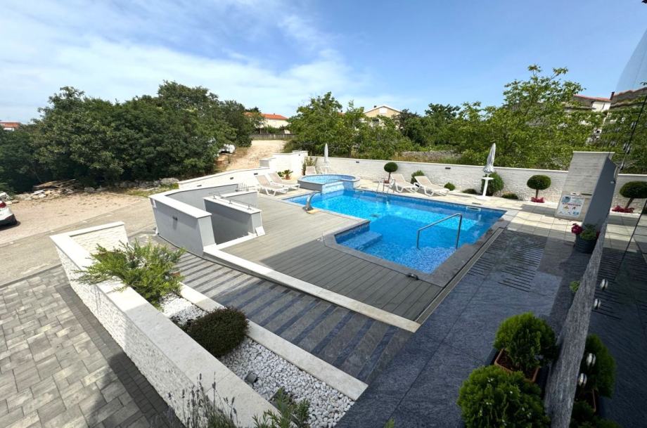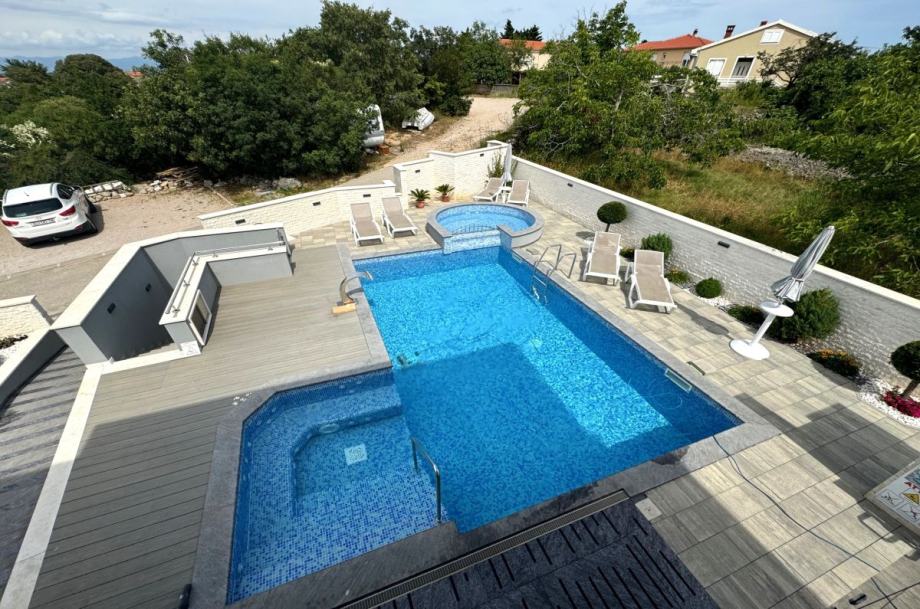 Otok Krk, grad Krk, šire područje, prodaja dvojne kuće površine 252 m2, s dva apartmana, konobom i bazenom. Apartman 1 sastoji se od podruma s konobom, wellnessom, ostavom i kupaonicom te prizemlja s dnevnom sobom, kuhinjom, blagovaonom, dvije spavaće sobe, kupaonicom, hodnikom i dvije natkrivene terase. Apartman 2 sastoji se od prvog kata s dnevnom sobom, kuhinjom, blagovaonom, dvije spavaće sobe, kupaonicom, hodnikom i dvije natkrivene terase. Kvalitetna gradnja i oprema, klimatizacija, dva parkirna mjesta. Mirna lokacija.