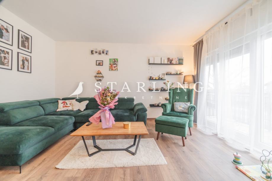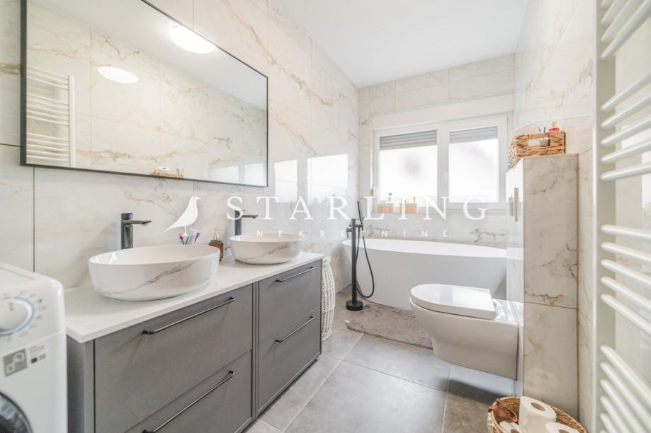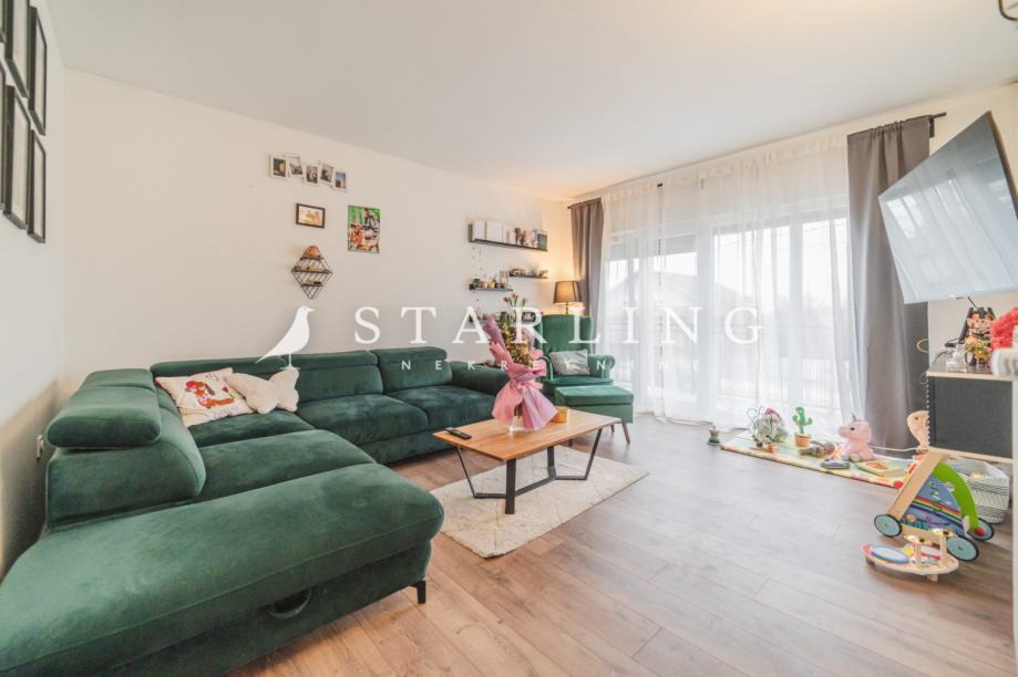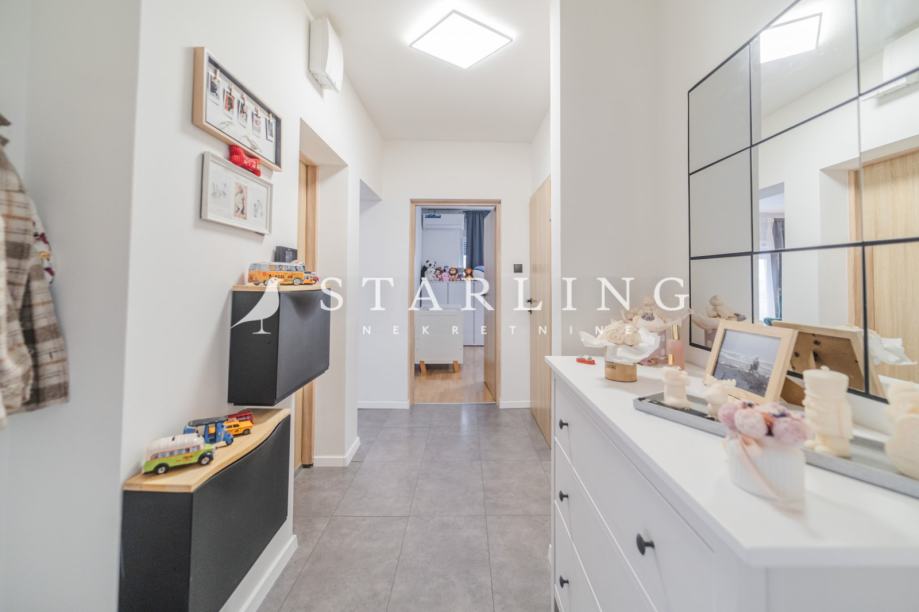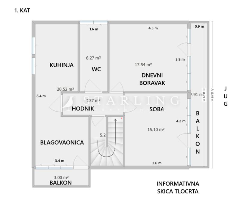 - KATA: dnevni boravak, kuhinja, blagovaonica, spavaća soba, kupaonica s WC-om, hodnik, dva balkona i stubište