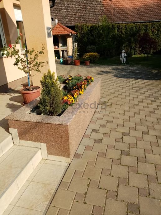 Prodaje se samostojeća kuća u prigradskom naselju Ježevo, nadomak grada Zagreba. Ježevo se nalazi u općini Rugvica, nedaleko Dugog Sela, svega tridesetak kilometara od centra grada i mirno je naselje u prirodnom okruženju, istovremeno odlično prometno povezano s istočnim dijelom grada Zagreba. Ježevo se nalazi uz autocestu A3 i u blizini autoceste A4, što ga odlično pozicionira na prometnoj karti Hrvatske. Nekretnina se nalazi na samom ulazu u Ježevo sa strane Zagreba. Kuća je sagrađena kao visoka prizemnica, ukupne korisne površine 180m2. Kuća je građena 2008. godine (useljena je 2009. godine) Porotherm opekom debljine 385mm, toplinski izolirana kamenom vunom debljine 80mm, te presvučena Demit perivom fasadom. U prizemlju kuće nalazi se prostrani dnevni boravak i kuhinja, dvije spavaće sobe, kupaonica i odvojeni toalet, te velika natkrivena terasa površine 12 m2, na koju se nastavlja kotlovnica. U potkrovlju kuće nalazi se potpuno uređen otvoreni prostor koji se može opremiti i namjestiti po ukusu budućeg vlasnika. Interijer kuće je potpuno i ukusno uređen, te opremljen namještajem i uređajima visoke kvalitete. U sklopu kuće se nalazi i grijana garaža predviđena za smještaj jednog vozila, a na popločenoj površini uz kuću je moguće parkiranje još jednog vozila. Kuća je grijana sustavom centralnog grijanja na kruto gorivo i plin. U prostorijama u kojima je pod popločen keramičkim pločicama (hodnik, kupaonica, kuhinja) provedeno je podno grijanje, dok se ostale prostorije griju radijatorima. Kuća je opremljena svim priključcima, uključujući i Internet. Opskrba vodom osigurana je iz gradskog vodovoda, a na imanju postoji i vlastiti bunar s hidroforom. Kuća se nalazi na hortikulturno uređenoj okućnici ukupne površine 1.013m2. Iza kuće se nalazi gospodarska zgrada ukupne površine 56m2 koja služi za smještaj strojeva i alata, do koje je omogućen pristup i većim vozilima. Dio okućnice koji se nalazi ispred i uz kuću je popločen betonskim kockama složenim po urednom i ukusnom uzorku, dok je ostatak okućnice prekriven urednim i održavanim travnjakom, uz nekoliko ukrasnih grmova i cvjetnjaka. Iza kuće se nalazi voćnjak s desetak voćaka i grmova bobičastog voća, te mali povrtnjak. Iza navedene nekretnine nalazi se zemljište površine 4.442m2 od istog vlasnika koje je moguće kupiti po povoljnoj i povlaštenoj cijeni po dogovoru s vlasnikom. Navedeno zemljište moguće je objediniti s predmetnom nekretninom u prostrano imanje pogodno za obavljanje raznih djelatnosti ili za čisto uživanje u prirodnom okruženju. Ukoliko želite da ovaj komadić raja na zemlji postane Vaš novi dom, obratite mi se s punim povjerenjem!