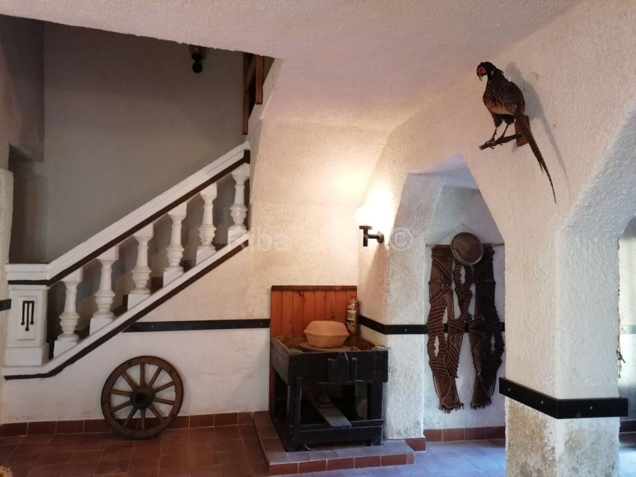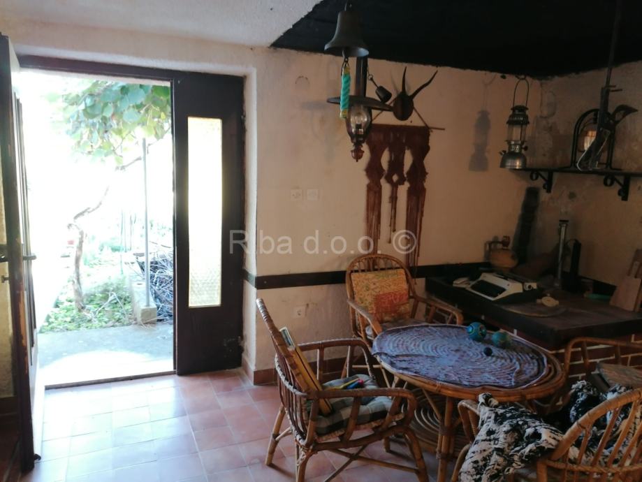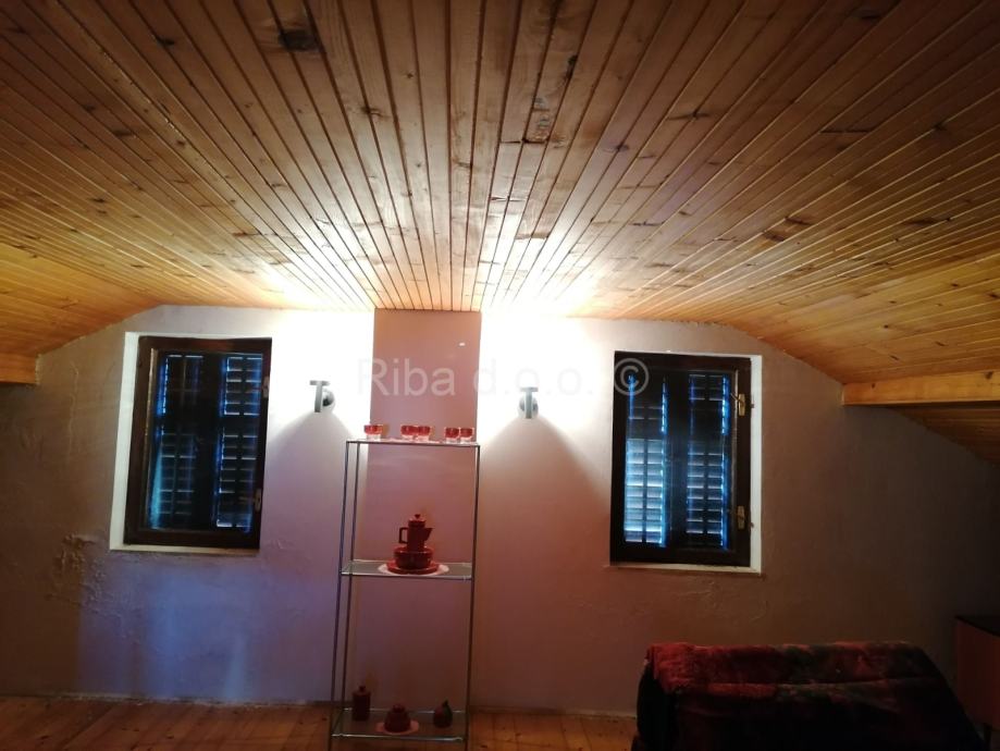 U prizemlju je ulazni dio uređen kao prostor za druženje s velikim kominom. Ostali dio je velika konoba te spremište.