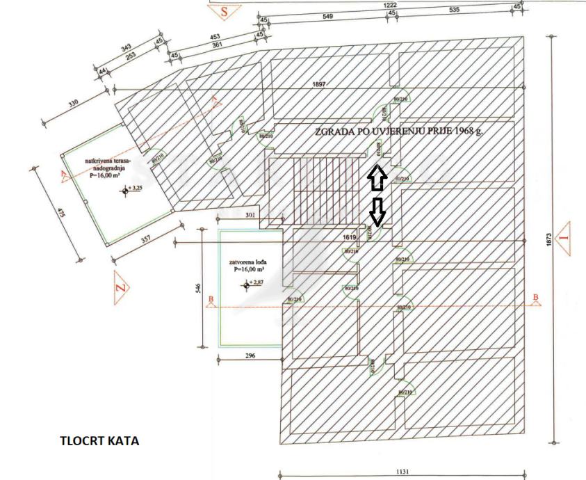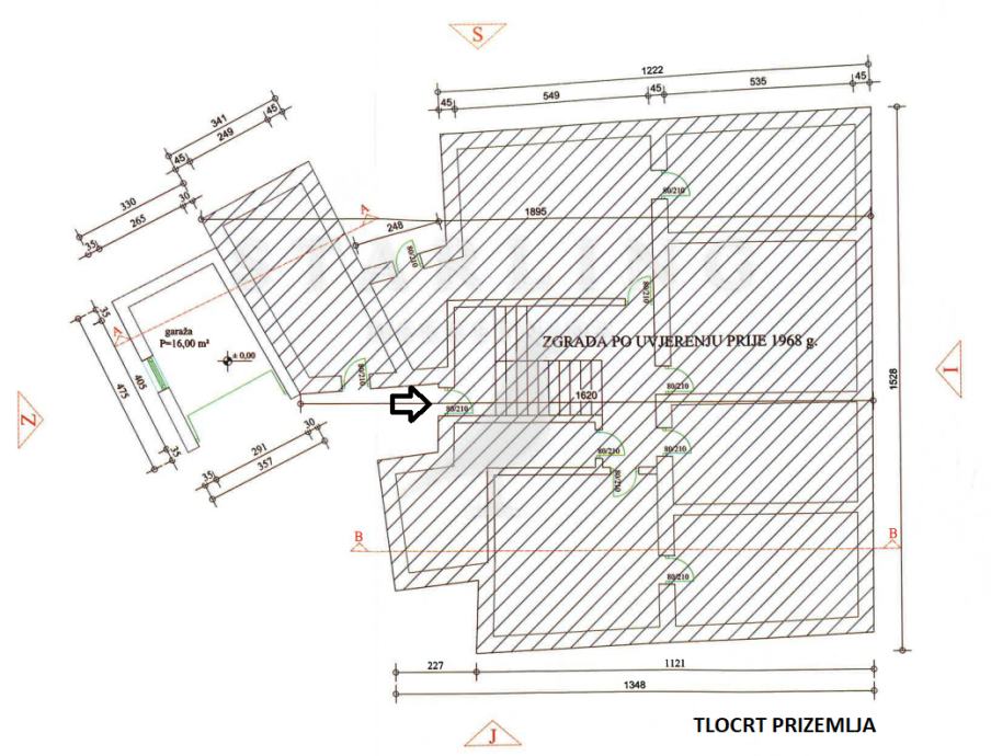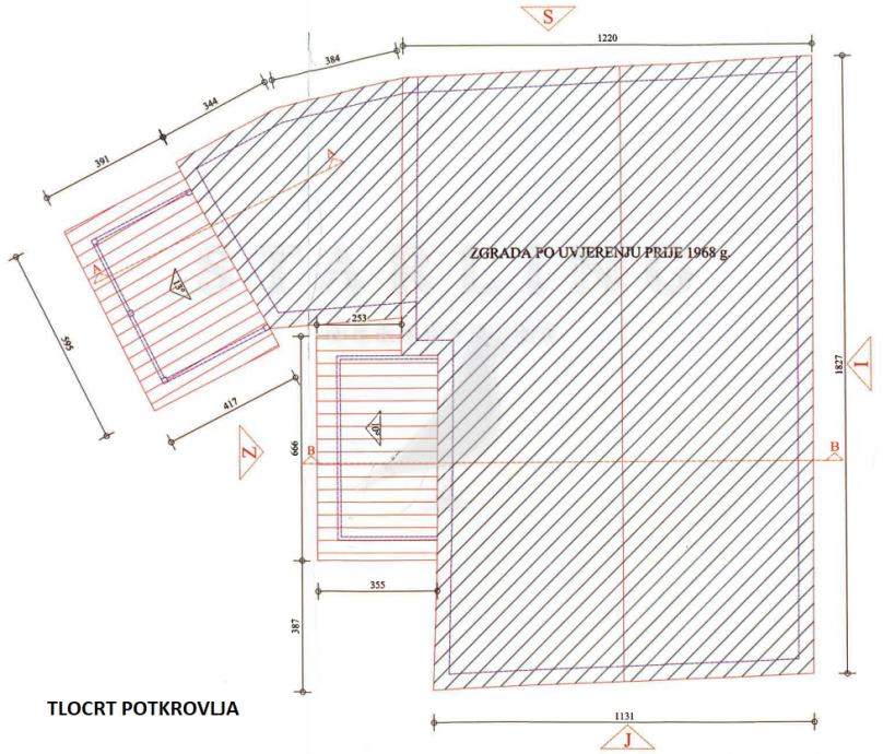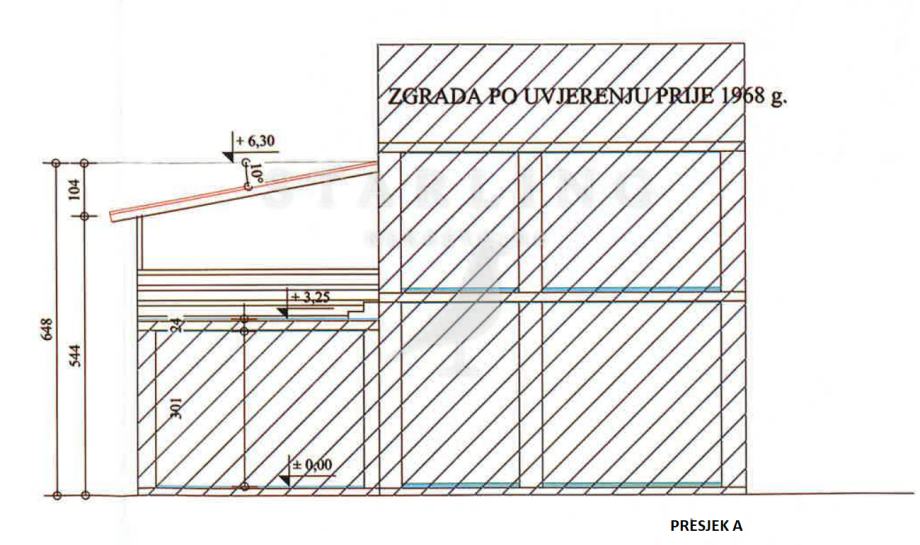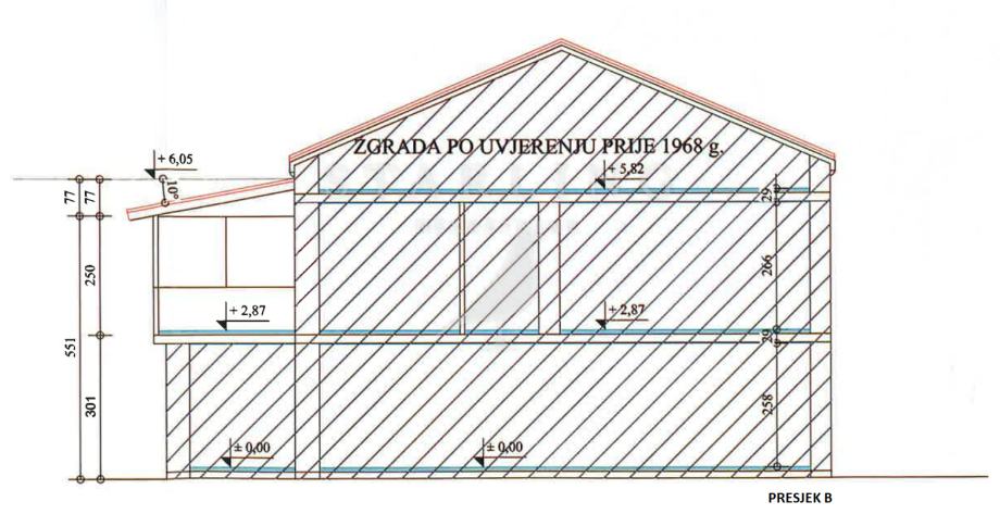 - TAVANSKI PROSTOR: soba površine 15 m2, ostatak tavana tlocrtne površine 200 m2 koji nije etažiran