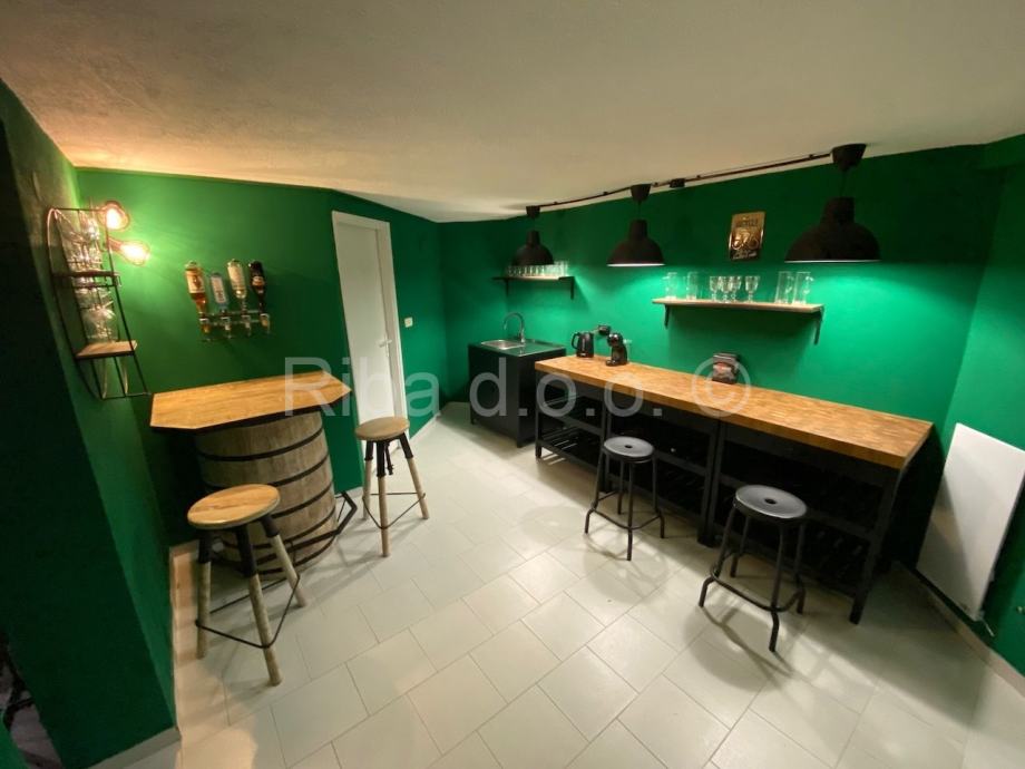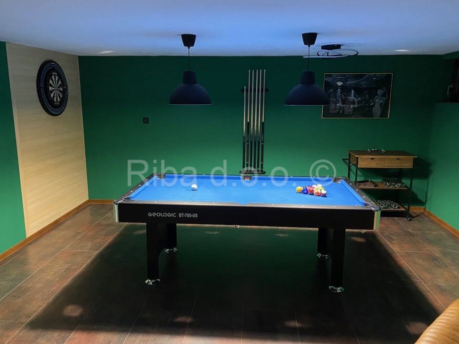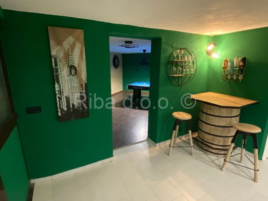 Prva stambena jedinica je u podrumu kuće, neto korisne površine 49,38 m2, s uređenim prostorom za zabavu, saunom i biljarom.