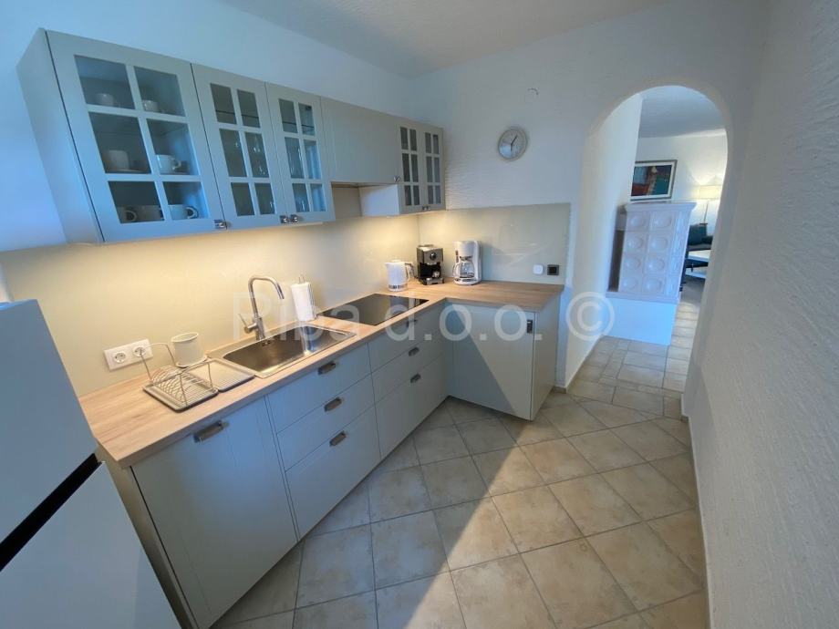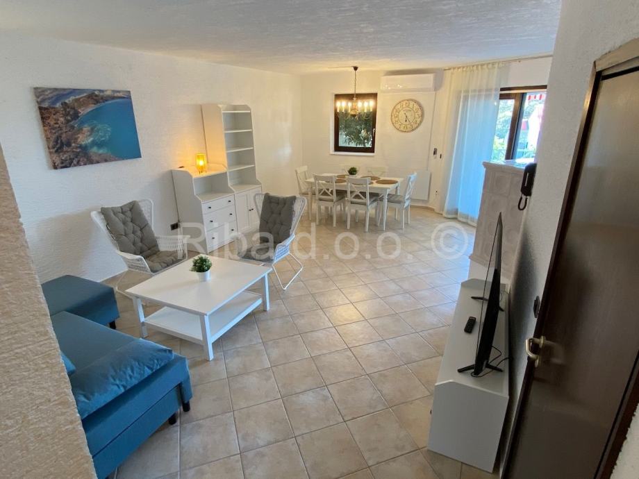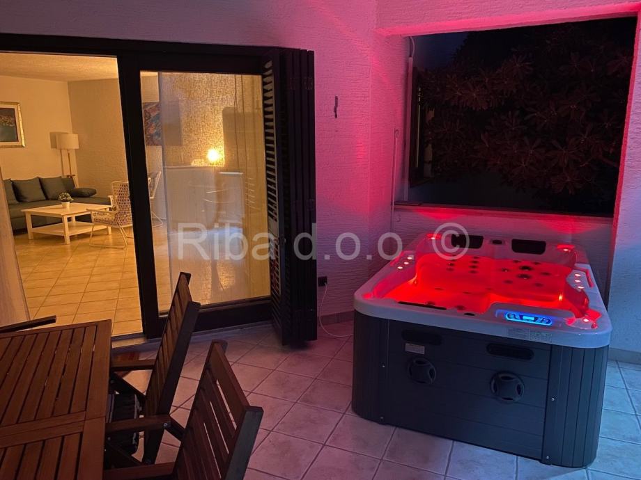 Drugi apartman je u prizemlju kuće, neto površine 81,49 m2, a sastoji se od dvije sobe, dnevnog boravka, kuhinje, predsoblja, kupaonices WC-om i natkrivene terase, s pripadajućim sporednim dijelovima: ostavom O u prizemlju, ukupne površine 1,28 m2, spremište i stubištem S u podrumu ukupne površine 14,79 m2, te kućnim vrtomukupne površine 274 m2. Ovaj apartman na velikoj lijepoj terasi ima i jakuzzi.