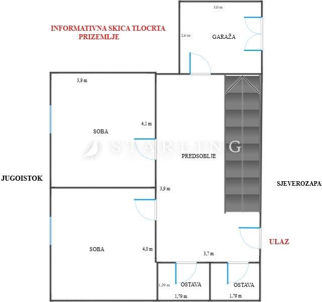 PRIZEMLJE: dvije roh-bau prostorije, prostrano predsoblje, dvije ostave i garaža