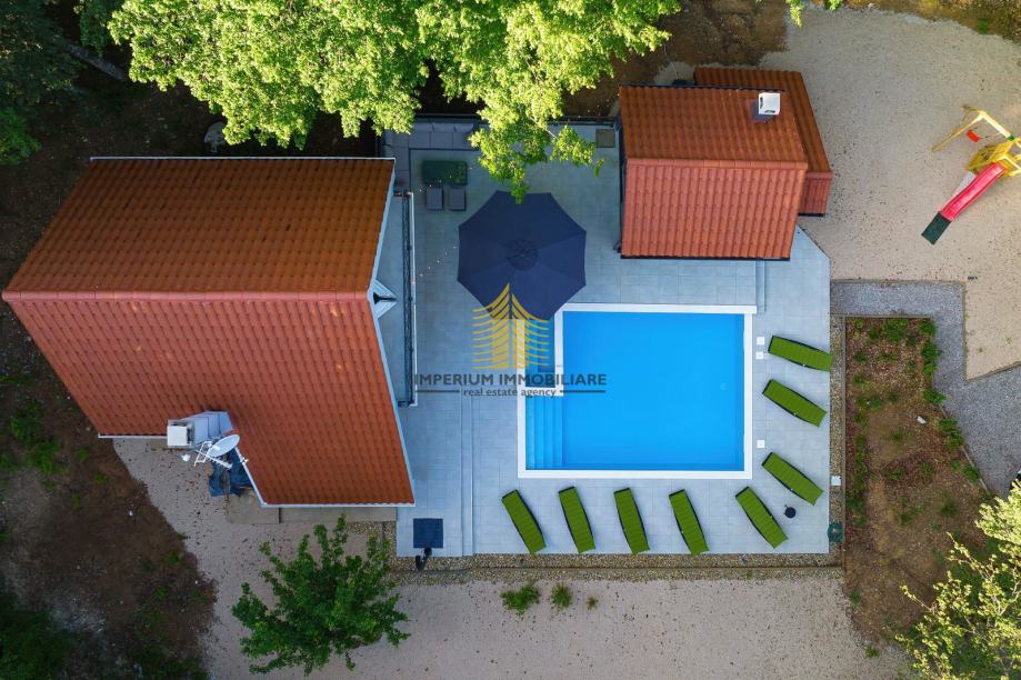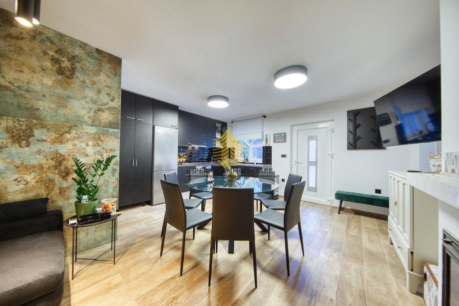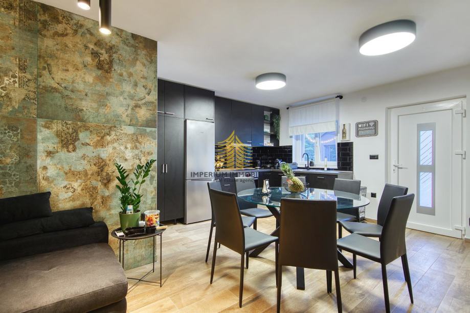 Kuća je 2020. godine temeljito adaptirana, što se ogleda u modernom i funkcionalnom dizajnu interijera. Prostori su opremljeni kuhinjom s aparatima, perilicom posuđa, perilicom rublja, te dodatnim elementima kao što su kada, TV, krevet i radni stol. Podno grijanje, kamin i klima uređaj osiguravaju udobnost i tijekom hladnijih i toplijih mjeseci.