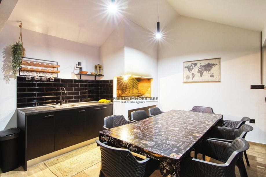 Ova nekretnina nudi niz dodatnih sadržaja koji je čine jedinstvenom: balkon, terasa, vrt, konoba i ljetna kuhinja samo su neki od prostora za opuštanje i druženje. Tu su i grijani bazen (mogućnost korištenja i u hladnijim mjesecima u godini), jacuzzi i roštilj, što znači da je svako okupljanje s obitelji i prijateljima prava poslastica. Dvorište je uređeno, a za ljubitelje prirode, lokacija nudi blizinu rijeke/jezera i planina.
