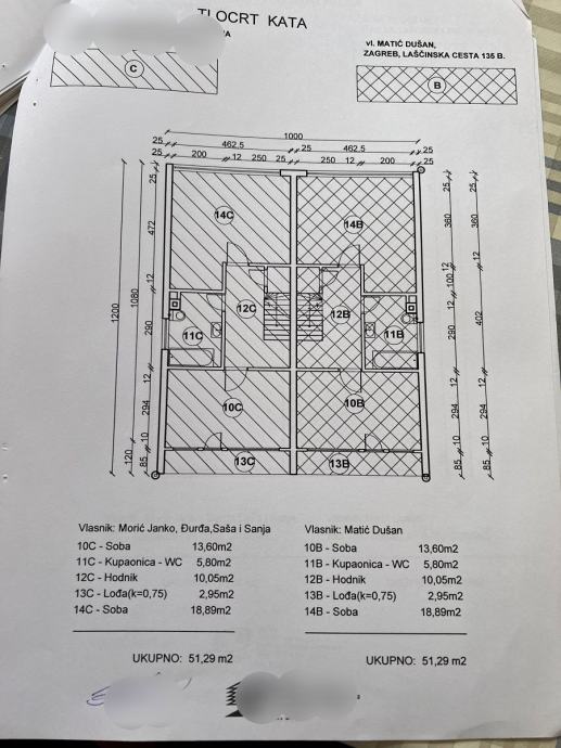 Prodajemo kuću(dvojni objekt), ukupne netto korisne površine 180,69 m2, izgrađene 1966. godine, na Laščinskoj cesti, Maksimir.