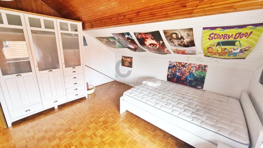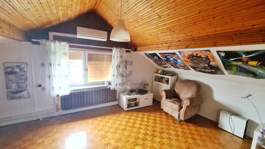 U potkrovlju se nalaze dvije sobe, kupaonica i vešeraj koji se može prenamijeniti u kuhinju.