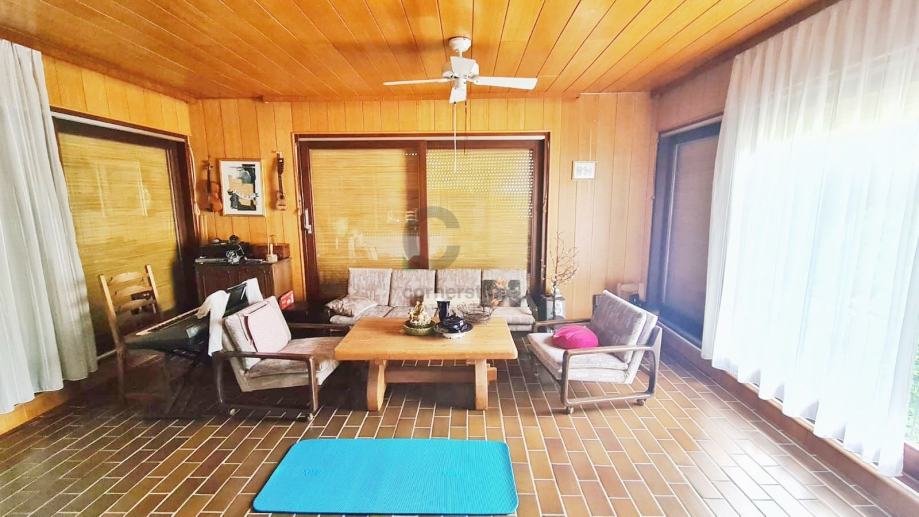 U prostranom i uređenom dvorištu se nalazi natkrivena terasa i dvije garaže i ugrađenim roštiljem.