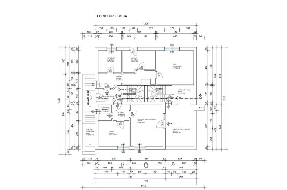 Otok Krk, Malinska, prodaja samostojeće kuće površine 398,20 m2, na parceli površine 550 m2 s pet stambenih jedinica, na mirnoj lokaciji, 400 m od plaže. Kuća se sastoji od suterena, prizemlja i prvog kata, vanjskih tlocrtnih dimenzija 14,52 x 12,76 m i ukupne visine 10,37 m. Potrebna izrada glavnog projekta i izvođenje završnih radova za dva nedovršena apartmana.