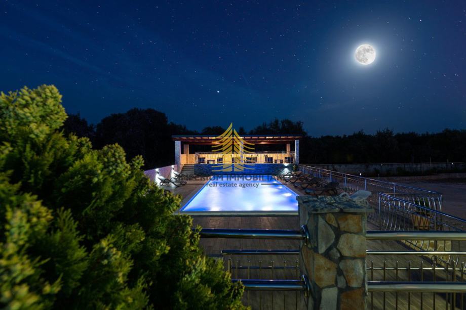 Kuća je orijentirana na sve četiri strane svijeta – sjever, jug, istok i zapad – što omogućuje obilje prirodne svjetlosti tijekom cijelog dana te ugodan ambijent u svim prostorijama. Posebnu atmosferu stvara lijepo uređena okućnica, a dodatnu vrijednost donosi bazen60m2 koji pruža mogućnost relaksacije i uživanja u toplim danima. Uz kuću se nalazi dvorište, balkon te ostava/skladište, što doprinosi funkcionalnosti i organizaciji prostora.