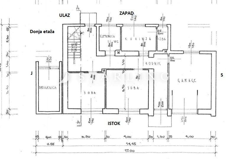PRIZEMLJA: dnevnog boravka,kuhinje s blagovaonom, izbe, garaže/spremišta i ulaznog hodnika