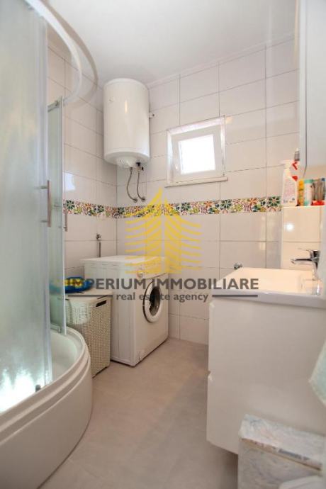 Prizemlje površine 72.34 m2 kuće nudi funkcionalan prostor s garažom, konobom i kupaonicom koji je preuređen u jednosobni i studio apartman, idealan za iznajmljivanje.