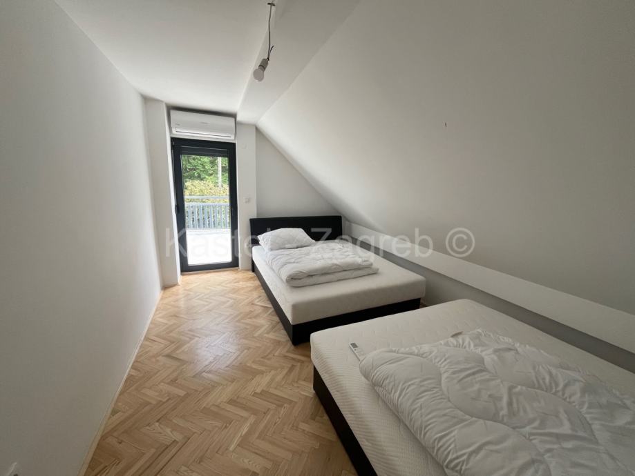 Kompletno uređena kuća, prizemlje sa dnevnim boravkom, kuhinjom, kupaonom i sobom, prostrana garaža u koju je smješten jacuzzi, kat sa dvije spavaće sobe, kupaonom i velikom terasom. Izvrsna prometna povezanost, alu stolarija, termo fasada, klima u svim prostorijama.