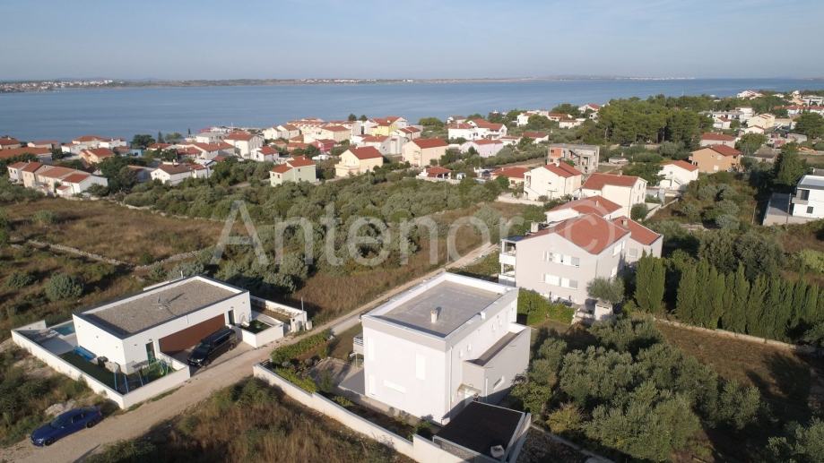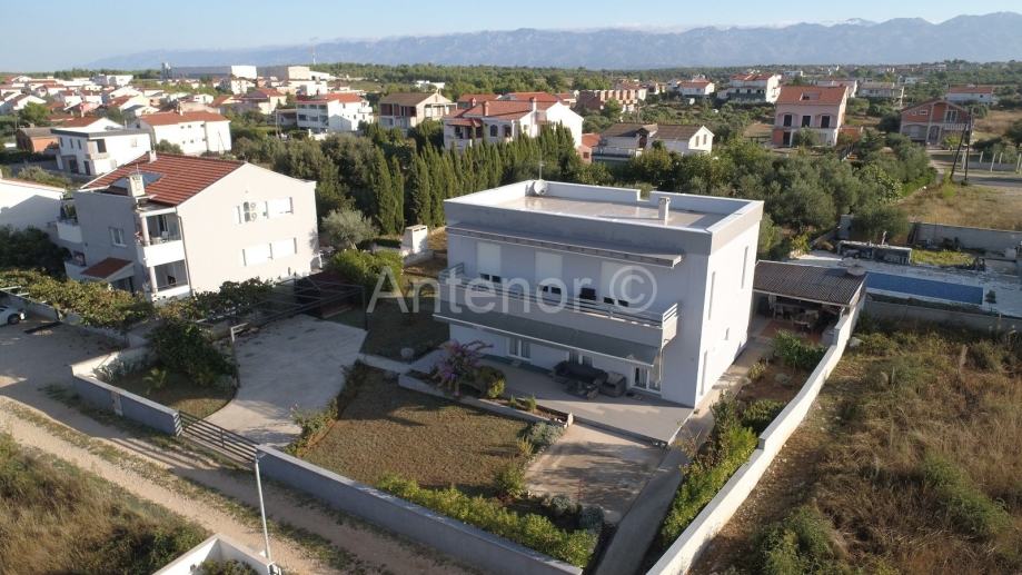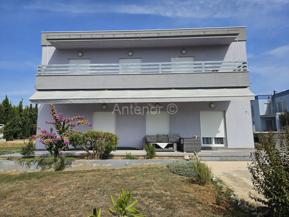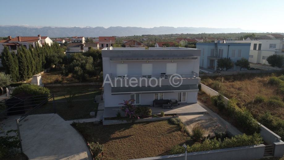 Vrsi - Kuća s pogledom na more. Kuća se sastoji od prizemlja i kata. U prizemlju se nalazi ulazni prostor, ulaz sa stubištem, dnevni boravak, blagovaona i kuhinja, wc i kupaonica, ostava, jedna spavaća soba i dvije terase. Na katu se nalaze još četiri spavaće sobe i dviije kupaonice s toaletom, te jedna terasa i hodnik. Kuća se nalazi 600 m od mora na mirnoj lokaciji. Ima uređen parking i vrt. Vlasništvo 1/1.