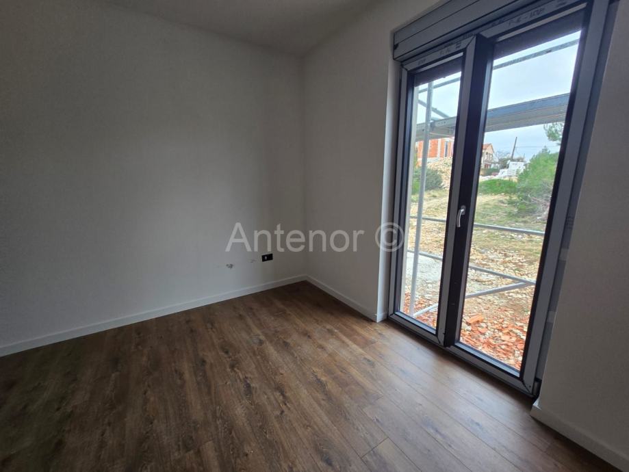 Unutarnjim stubištem dolazi se na kat gdje se nalazi hodnik, 3 spavaće sobe svaka sa svojom kupaonicom, a dvije spavaće sobe imaju izlaz na lođu. Ukupna tlocrtna površina 1. kata je 85,80 m2.