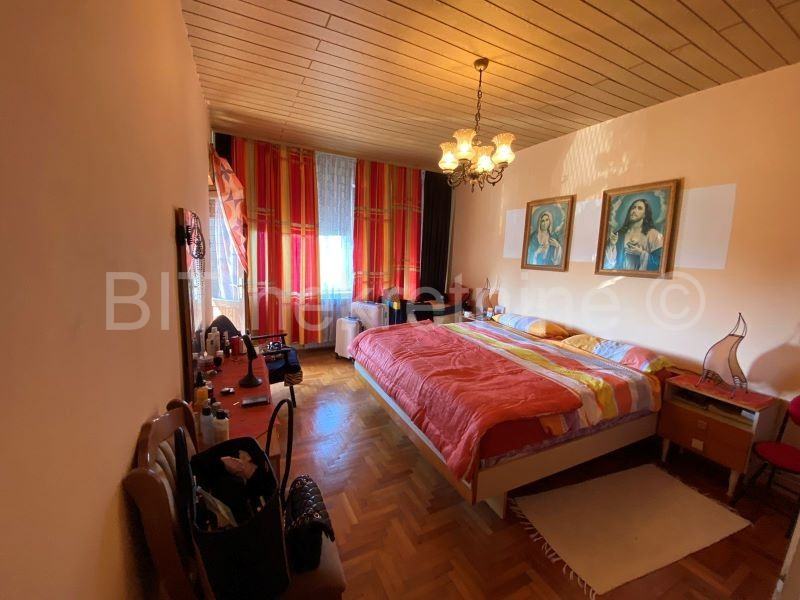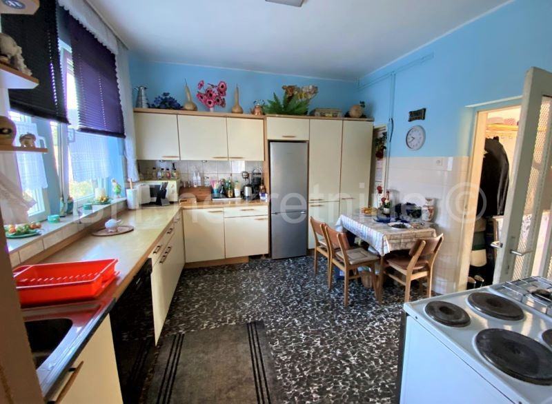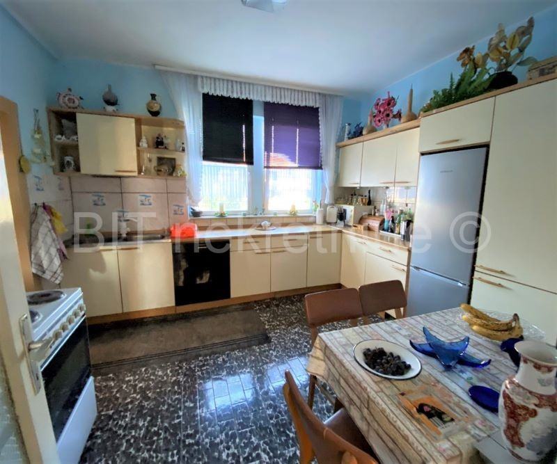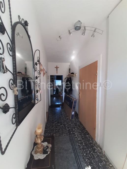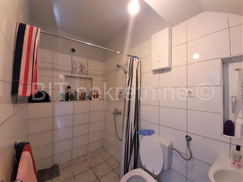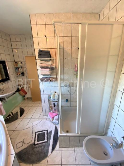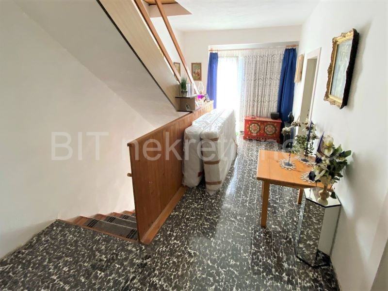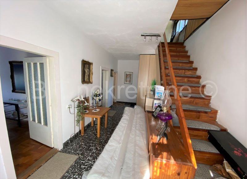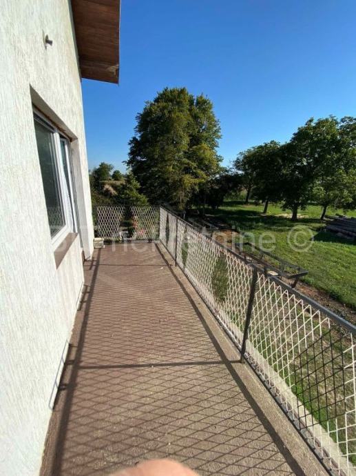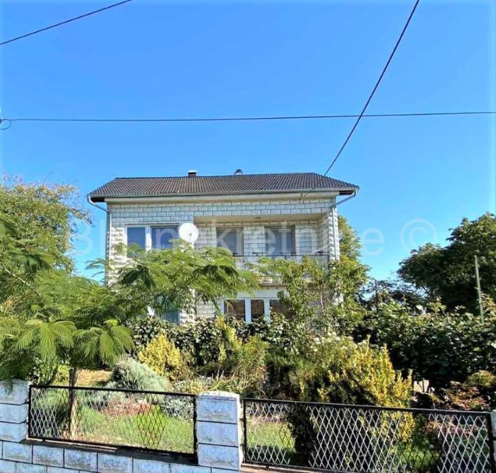 Na katu se nalaze tri spavaće sobe, kupaonica s kadom i tuš kabinom, izlaz na južnu i zapadnu terasu te stubište za potkrovlje (djelomično uređeno, dvije sobe). Sa sjeveroistočne strane na kuću se nadovezuje dupla garaža i spremište (drvarnica) te podrum. Okućnica površine 1040m2, sve ograđeno.