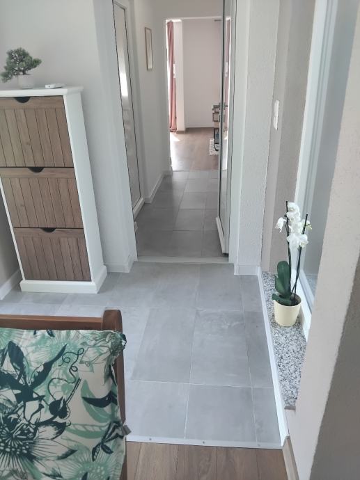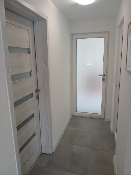 -Prostrane pvc ustakljene i klimatizirane terase 15 m kvadratnih(zimski vrt) iz koje se ulazi u prostor od 25 m kvadratnih predviđen za hodnik i dvije spavače sobe koje treba završiti iznutra.