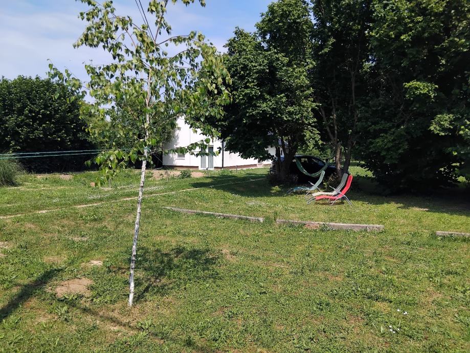 Prekrasno dvorište ogradeno od pogleda 1800 m kvadratnih...razna hortikultura posadena...privatnost zbog širine placa i udaljenosti susjednih čestica. Širina čestice 27 m,dupli plac(rijetka prilika).Veliki potencijal.Direktna prodaja bez agencija.Legalizirano.Kupnja gotovinom.