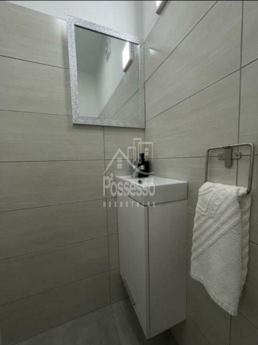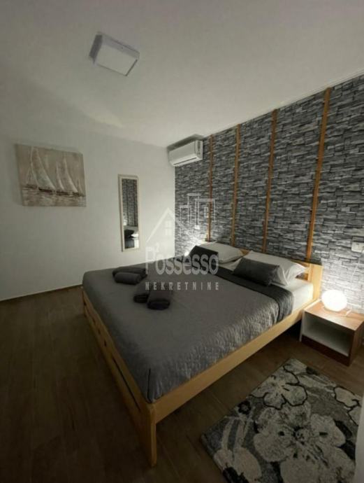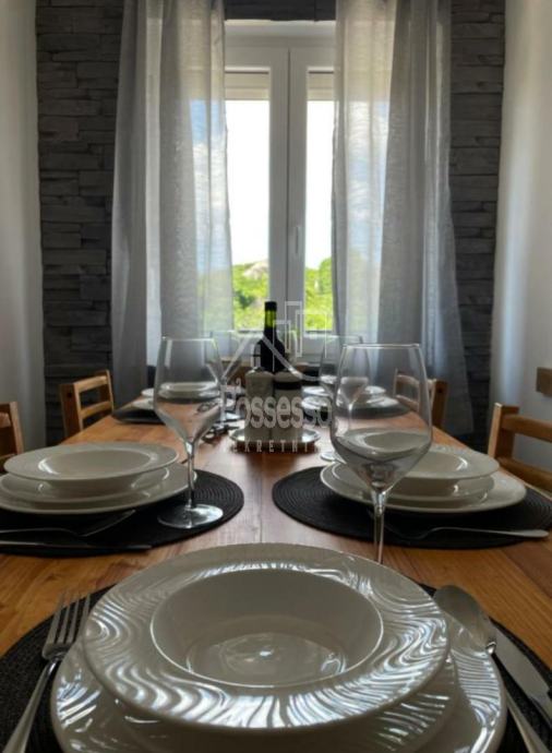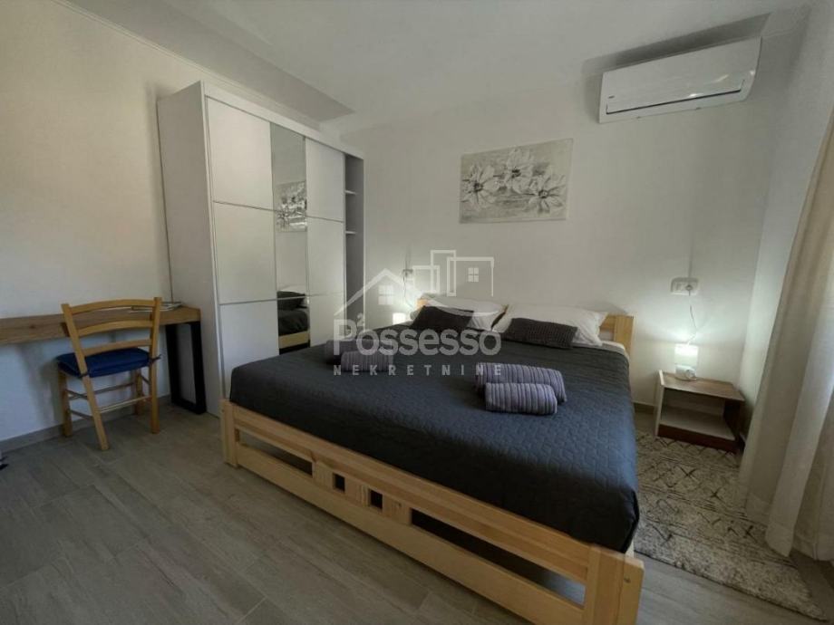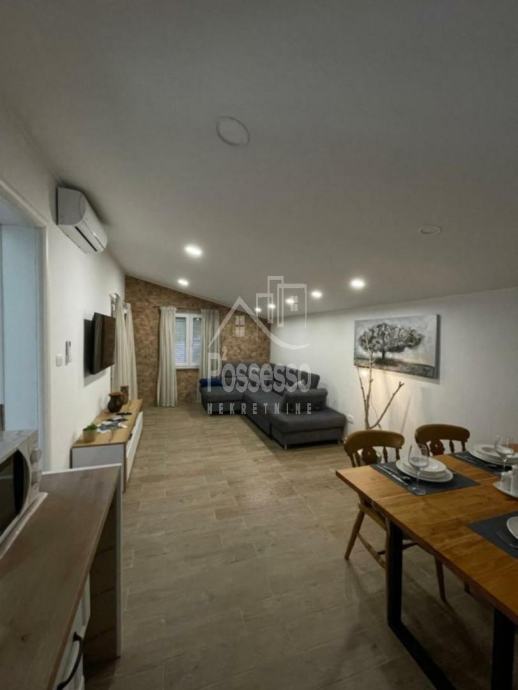 U prizemlju se nalazi prostrani stan, idealan za vlasnički boravak ili dodatni iznajmljivački prostor. Na gornjoj etaži smještena su dva dvosobna apartmana, svaki s vlastitom terasom i prekrasnim pogledom. Kuća također uključuje ulični poslovni prostor, što dodatno povećava njezinu vrijednost i potencijal za različite poslovne namjene.