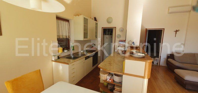 Na drugom katu nalazi se dnevni boravak sa kuhinjom i blagovaonom, dvije spavaće sobe i kupaonica.