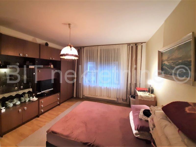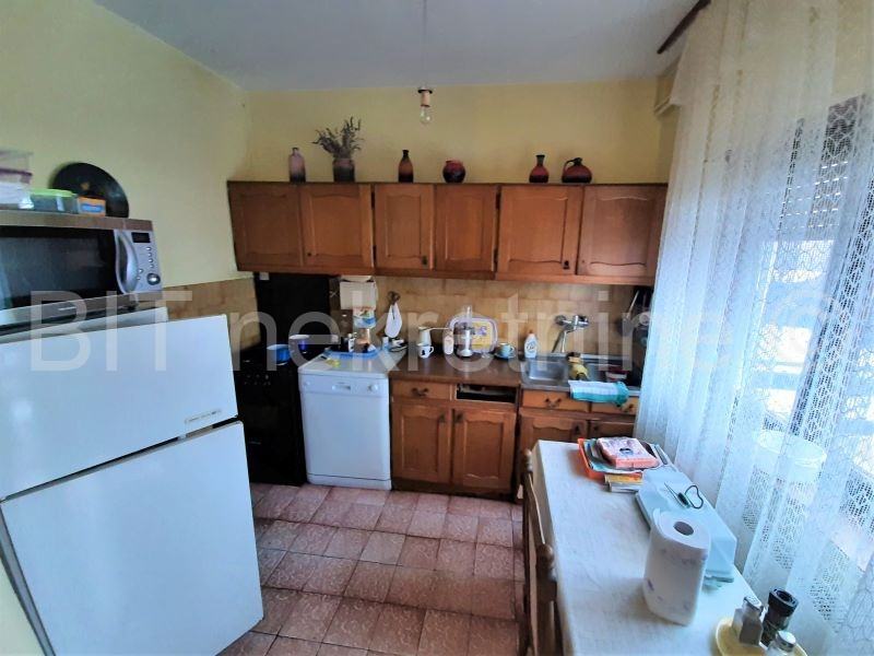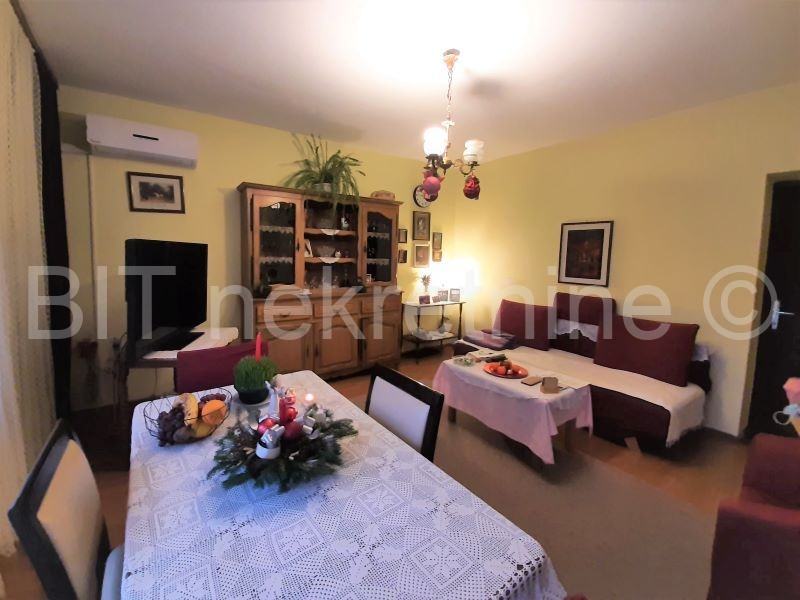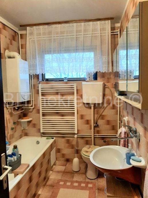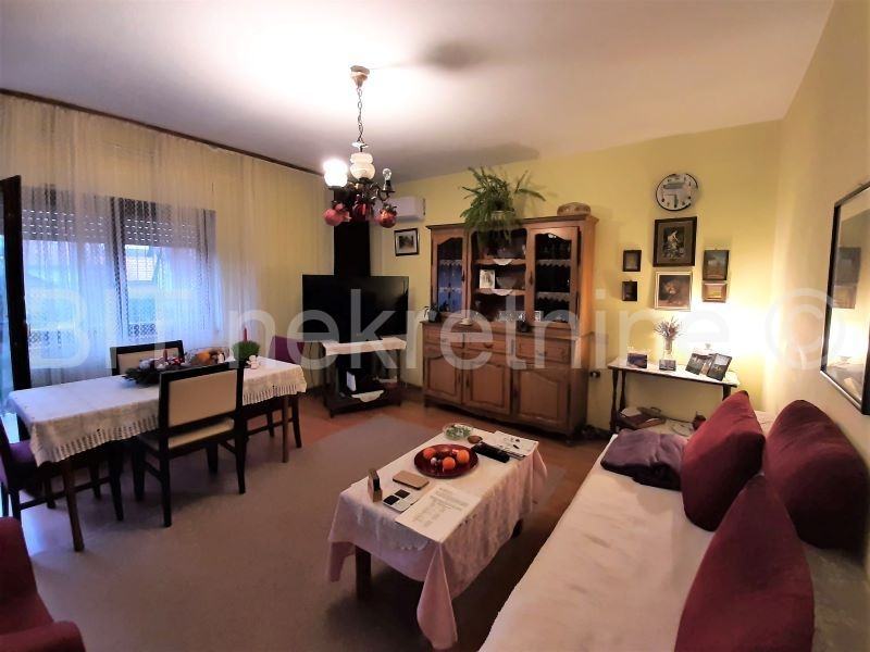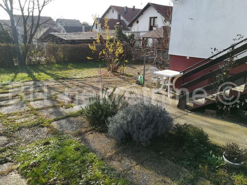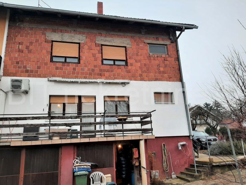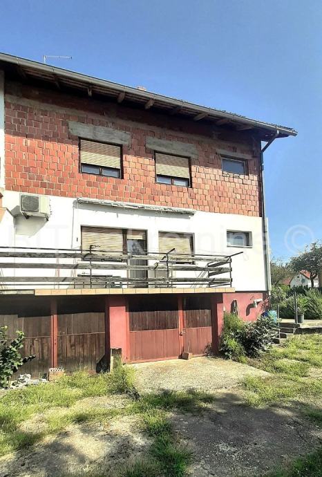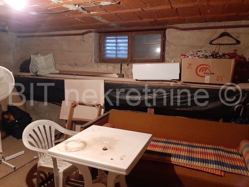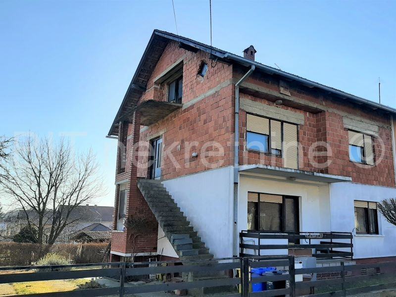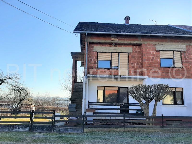 Dvojna kuća u prigradskom naselju Podolice, udaljena 3,5km od centra grada, nedaleko nove osmogodišnje škole. Izgrađena sredinom ’80-ih, prizemlje renovirano 2015.g., ima sve gradske priključke, grijanje centralno, plinsko. Sastoji se od podruma, prizemlja (91m2), kata (90m2) i potkrovlja. Podrum izgrađen u suterenu čine dvije garaže (24m2 i 17m2) te još dva spremišta. Prizemlje se sastoji od hodnika, dvije spavaće sobe, kupaonice, dnevnog boravka, kuhinje, blagovaonice, lođe te balkona orijentiranog prema jugozapadnoj strani dvorišta. Toplinska stiropor (10cm) izolacija obuhvaća prizemlje kuće. Kat nije uređen za stanovanje (raspored prostorija: hodnik, dvije sobe, kupaonica, kuhinja i dnevni boravak, lođa, ulaz za potkrovlje. Okućnica (560m2), predstavlja ograđeno dvorište s nekoliko voćaka i cjelogodišnjeg bilja.